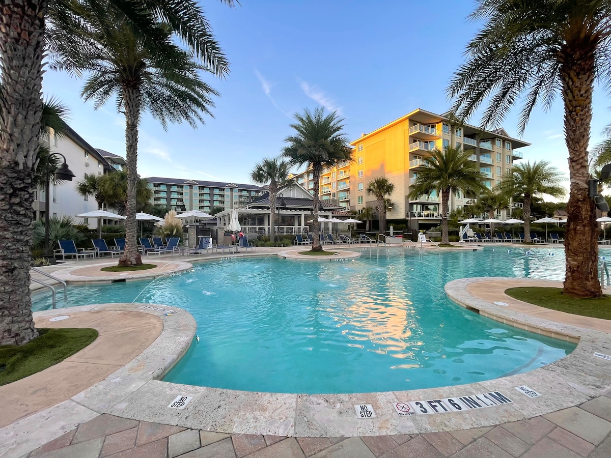 海港镇中心-海滩|泳池|高尔夫球场| 2卧/2.5卫-泳池通道