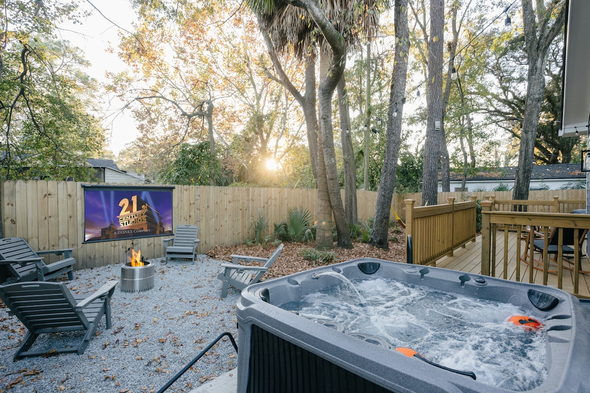 Amazing Location! This home sits in between Tybee Island and Savannah's Historic Downtown. A 10 minute drive to River Street and 15 minute drive to Tybee Island. This is the perfect home for families or couples wanting to visit the Wildlife Center located just 3 minutes away! Cozy hot tub and firepit, Beach chairs and towels, plush beds with luxurious linens, a fully stocked kitchen, and all the things you need to make a vacation complete are waiting for you.