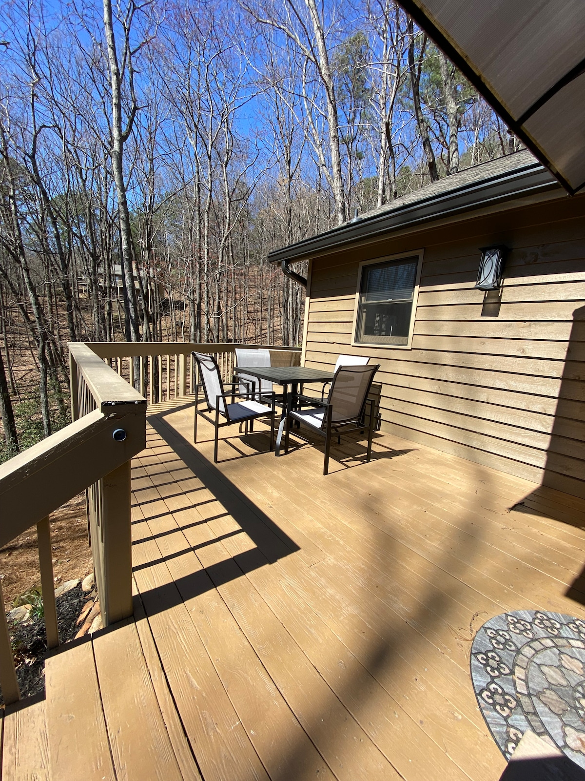 Relax in this unique "treehouse" perched among the trees. Enjoy being surrounded by nature with floor to ceiling windows that welcome the outdoors in. Treetopper Cabin, a clean, modern, comfortable and peaceful retreat. Situated in Big Canoe, Treetopper is central to most amenities. Big Canoe is a 8000 acre nature preserve, includes 27 holes of Golf, Pools, Boating, Paddle Boarding, Racquet Ball, Tennis, Bocce, Basketball, Kayaking, 20 miles of hiking, jeep trails and more.