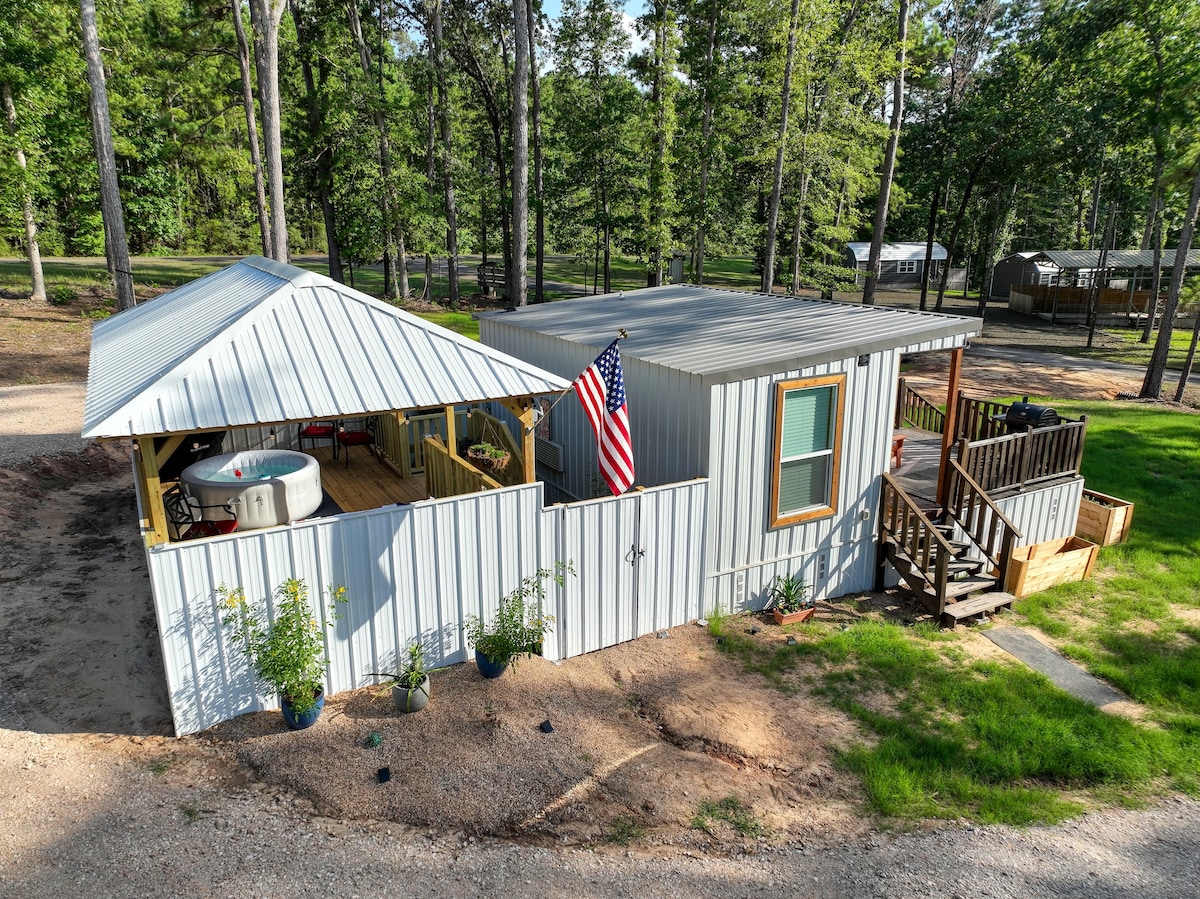 Tiny house built in 2023 with all of the amenities nestled among the pine trees of 30 acres. 3/4 of a mile from a public boat ramp. Plus, it's walking distance to a private shoreline of Lake Sam Rayburn with private beach. Has one queen size bed plus a sofa bed which makes into a full size bed; can easily sleep 3 people. Book your stay and experience the charm of our Lakeside Tiny House Retreat. Discover why small is truly beautiful when it comes to a getaway at Lake Sam Rayburn!