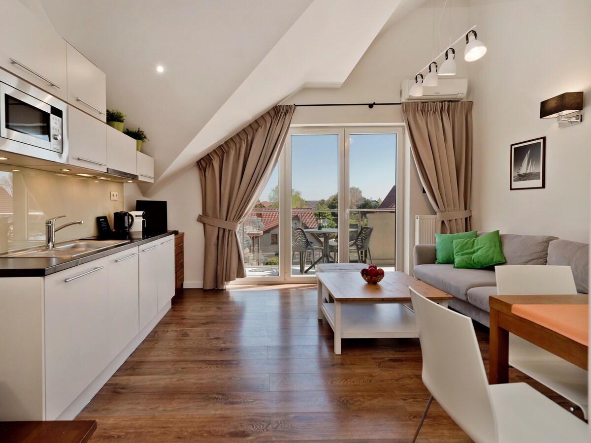 Zapraszam do stylowego apartamentu położonego w samym sercu perły polskiego wybrzeża. Nasi Goście znajdą w nim wszystkie nowoczesne udogodnienia jak zmywarka, 50" smart tv, soundbar, zamrażarkę, itp. Apartament usytuowany jest w centrum Juraty w pobliżu plaży i promenady. Klimatyzowane wnętrza pozwolą złapać oddech, a zadaszony, otulony zielenią taras zapewni chwile relaksu. Dla małych dzieci możliwość dostawienia łóżeczka. Serdecznie zapraszam :)