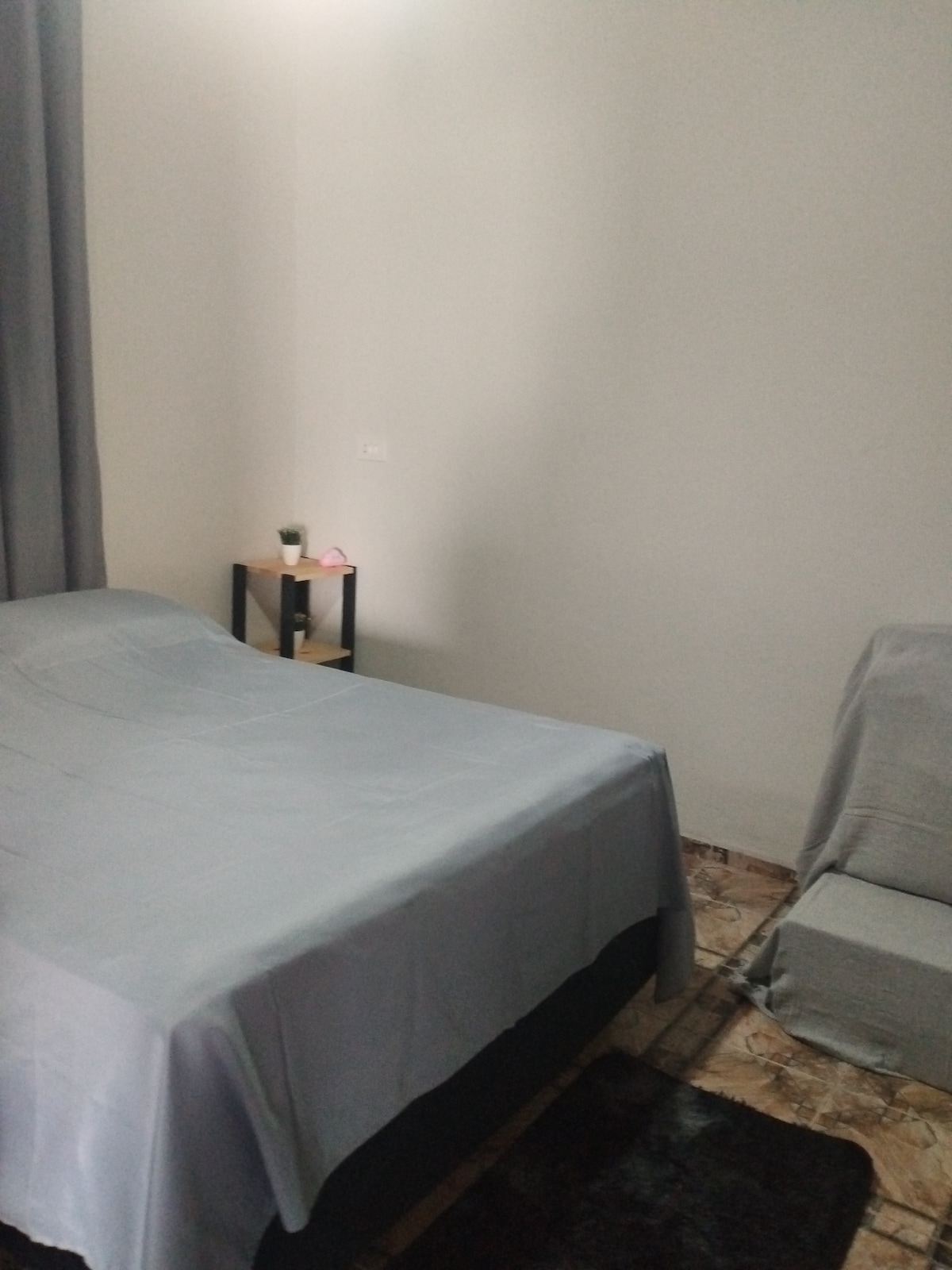 Casa aconchegante, c/ espaço privativo, em bairro calmo, fica 2 minutos do shopping, está próxima à supermercados, restaurantes, farmácias, postos de gasolina, hospitais e à saída da cidade pelo anel viário. A mesma possui sala c/ sofá cama, cozinha equipada (microondas, airfryer, pipoqueira, panela de pressão elétrica, bebedouro para água mineral e utensílios), 2 quartos sendo: 1 c/ ar condicionado, 1 cama de casal e 1 cama de solteiro; e outro c/ ventilador e cama casal. Toalhas e lençóis.