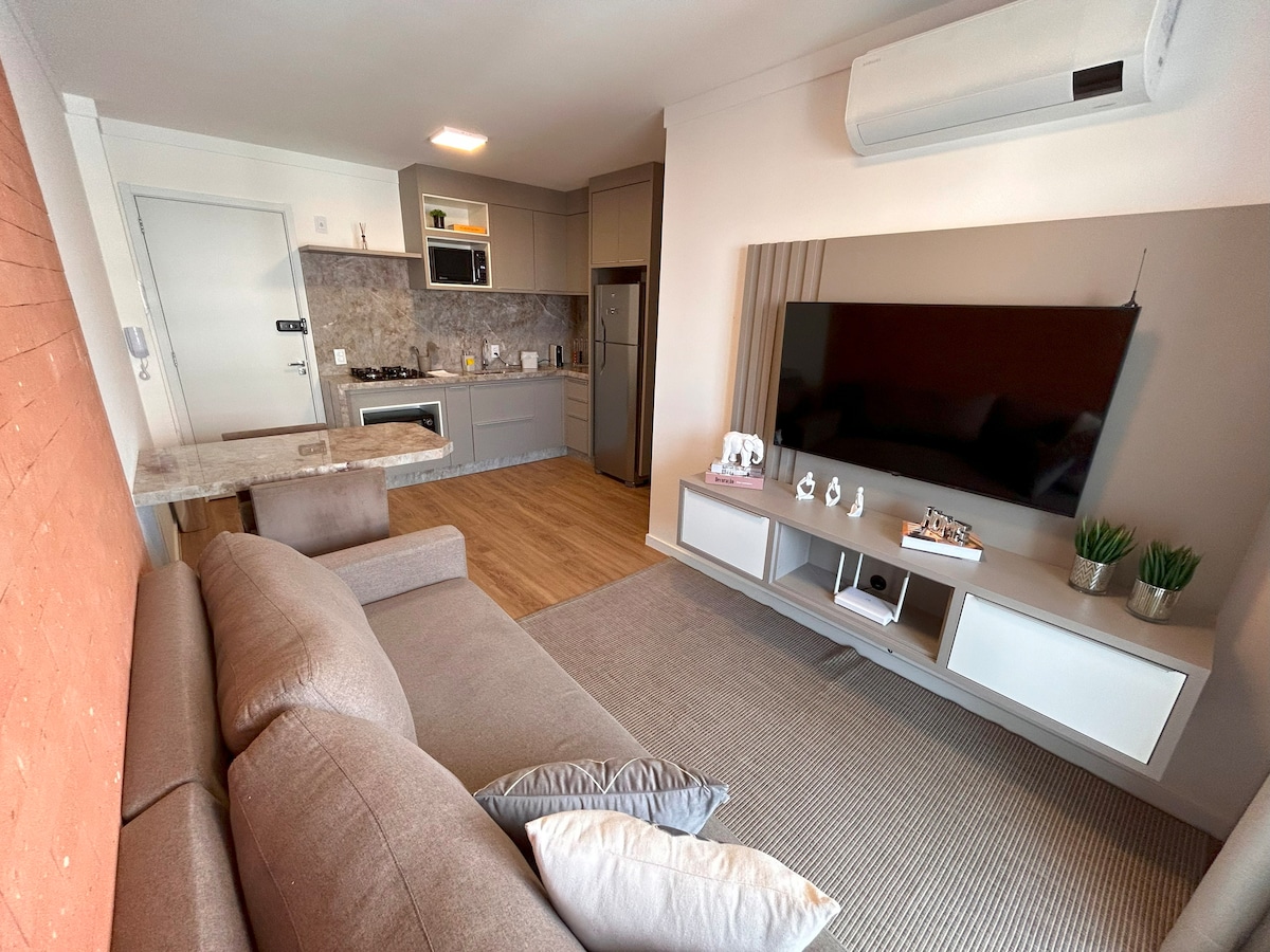 Único! (Pet-friendly) Prédio em condomínio, Lazer e segurança. Studio novinho e aconchegante com garagem priv, ar condicionado e internet (300MB), Tv42 + apple Tv + Chromecast, academia, piscina, sala reuniao, co-working e lavanderia Omo. Praticidade e requinte alto padrão em localização privilegiada. Ao lado do shopping center, hiper mercado, do hospital Amaral Carvalho e diversos bares e restaurantes, tudo isso a curta distancia a pé.