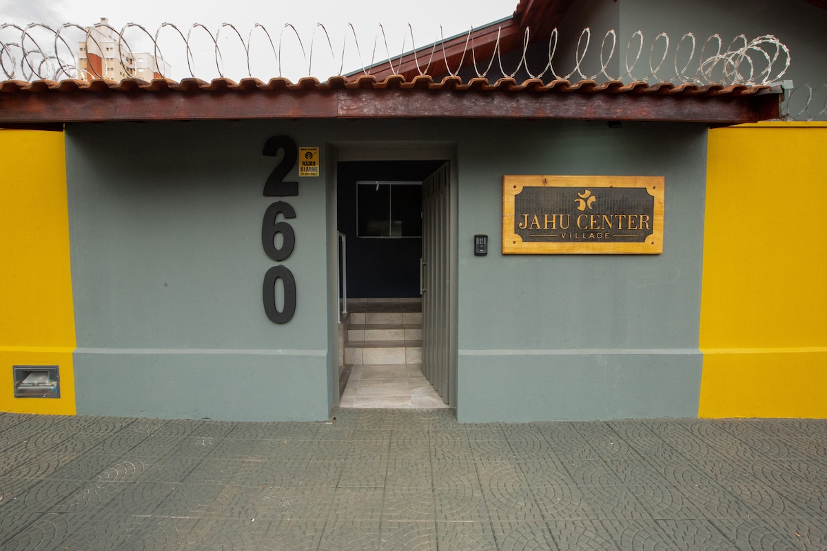 Belíssimo studio em região nobre da cidade. Nosso studio foi projetado com muito charme e elegância, em estilo retrô, para tornar sua estadia uma experiência inesquecível! Fica muito próximo ao Jaú Shopping Center, barzinhos, restaurantes e centro da cidade. Se você adora observar o céu e as estrelas, o studio tem vista espetacular.