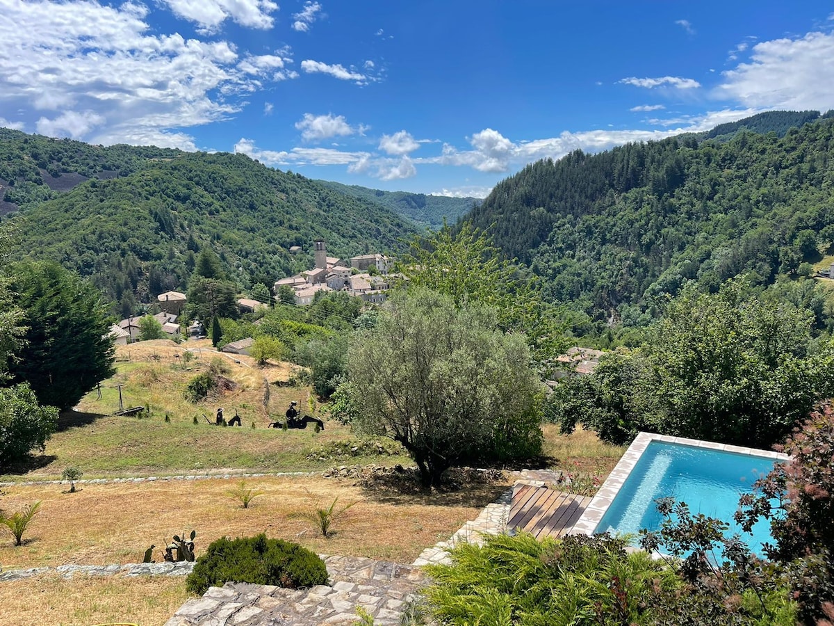 Near of the characterful village of Labeaume, charming Ardèche villa, ideal for 8 guests. Quiet, 400 m from the village, you will enjoy an outdoor swimming pool or enjoy the river. The villa offers: -three bedrooms -a mezzanine -a dining area -a covered terrace and a garden lounge -an swimming pool -a parking -a garden 800 m2 (the whole villa is fenced)