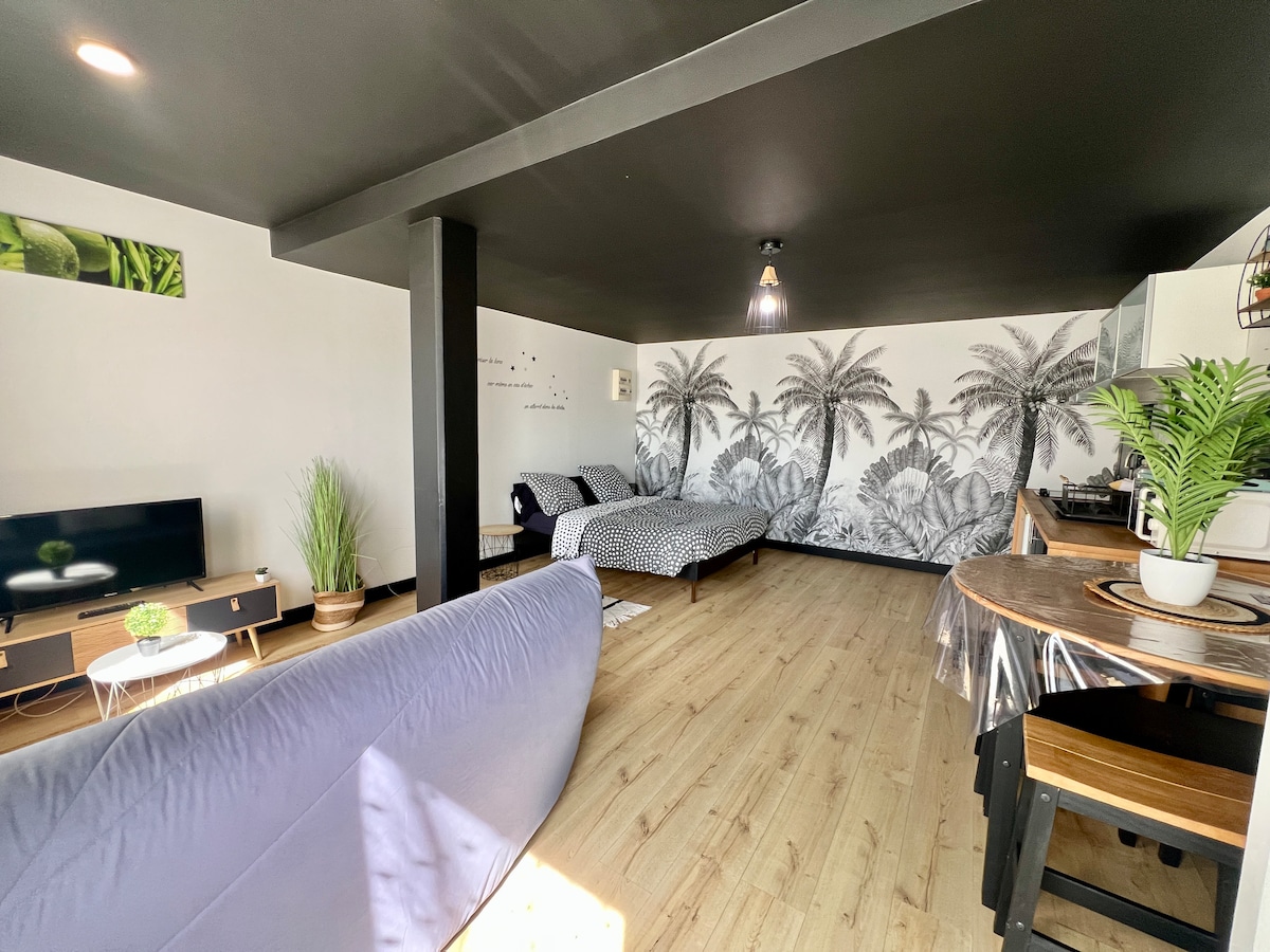 ☀️🏡 Profitez d’un studio lumineux, cosy et moderne avec jardin et terrasse. Il est composé d’une grande pièce divisée en deux espaces ; un côté salon avec un canapé lit (140*190) qui dispose d’un vrai matelas si besoin et un côté chambre avec un lit 140*190 cm. Le logement est spacieux, près de 30m2. 🍳 🚿 Vous trouverez également une cuisine équipée ainsi qu’une salle de bain et 1 WC 👤 Séjournez jusqu’à 4 personnes confortablement 🔑 Arrivées et départs autonomes 💰 Faible frais de ménage 10€