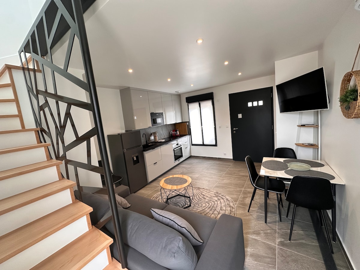 Take advantage of this accommodation classified as 4* tourism with its ground floor with kitchen open to the living room opening onto terrace and a private 60m2 garden, not overlooked, facing south. Floor: A bedroom offering a 160x200 bed, a second bedroom offering a single bed of 90x200 and a trundle bed of 80x200 convertible into 160x200. A bathroom with double basin, 80x120 shower upstairs. Restaurants and leisure within walking distance.