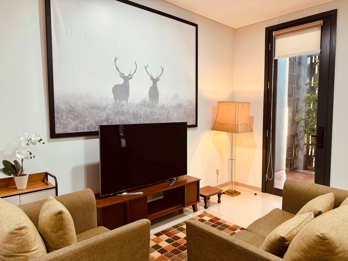 Are you bored living in a hotel? We offer a tranquil place with a feel of tropical Indonesian living in the heart of Jakarta. Despite the hustling and bustling of the city, you will find a peaceful and cozy home for you to rest and relax after your busy day. It is family friendly, big open space with lots of natural lights and spacious common area.