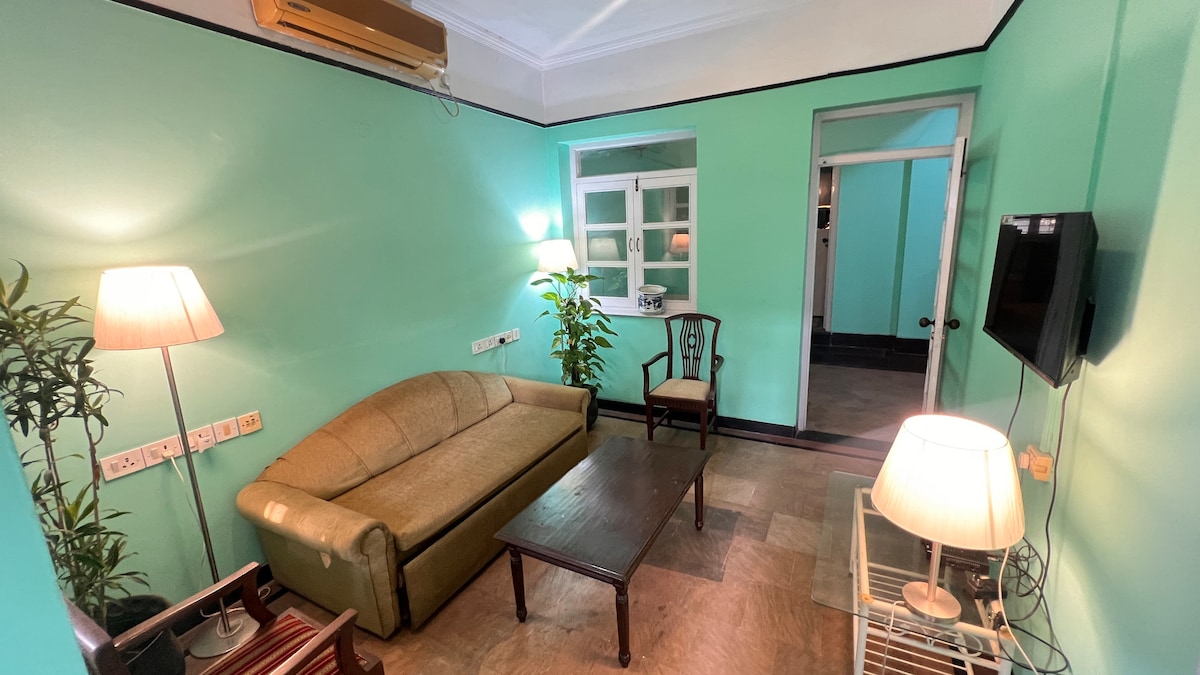 Kick back and relax in this calm, stylish space designed for modern living - The smart Apartment is one of the most peaceful places in New Delhi . Situated centrally in Greater Kailash 1 ( south delhi ) the locality is great for those who are visiting Delhi for a break or plan to work for home - we are an orgized couple who love hosting. The space has its own entrance and kitchen with a large smart tv and work desk - the internet speeds are above 50 mbps witha a Ro and garden in the common areas