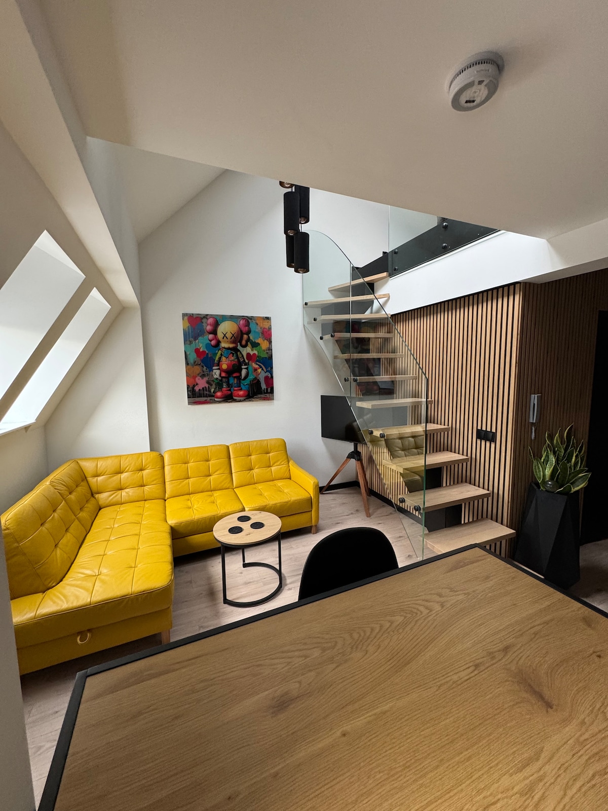 An excellent place for a short or longer stay in Javor. For work and for relaxation. The apartment has a comfortable bed, a kitchen equipped with an induction hob, an oven with microwave function and a refrigerator with freezer. There is a washing machine and an iron at guests' disposal. The balcony with a deckchair is a good place to relax overlooking the fields and the road with unobtrusive car traffic. Very good access to the S3 expressway (3 km) and the A4 highway. We issue invoices.