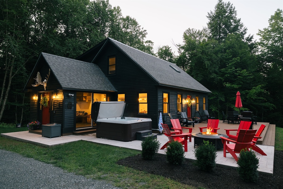 The Jay Peak Retreat – Experience the Northeast Kingdom’s premier destination at Jay Resort, known for record snowfall and Vermont’s largest indoor waterpark. This warm, stylish cabin offers an open-concept layout perfect for cozy gatherings and après-ski lounging. Blending upscale comfort with rustic charm, enjoy a creek out back, river across the street, patio, fire pit, and plush outdoor chairs. Just 1 hour from Burlington, 2 from Montreal, and 3.5 from Boston.