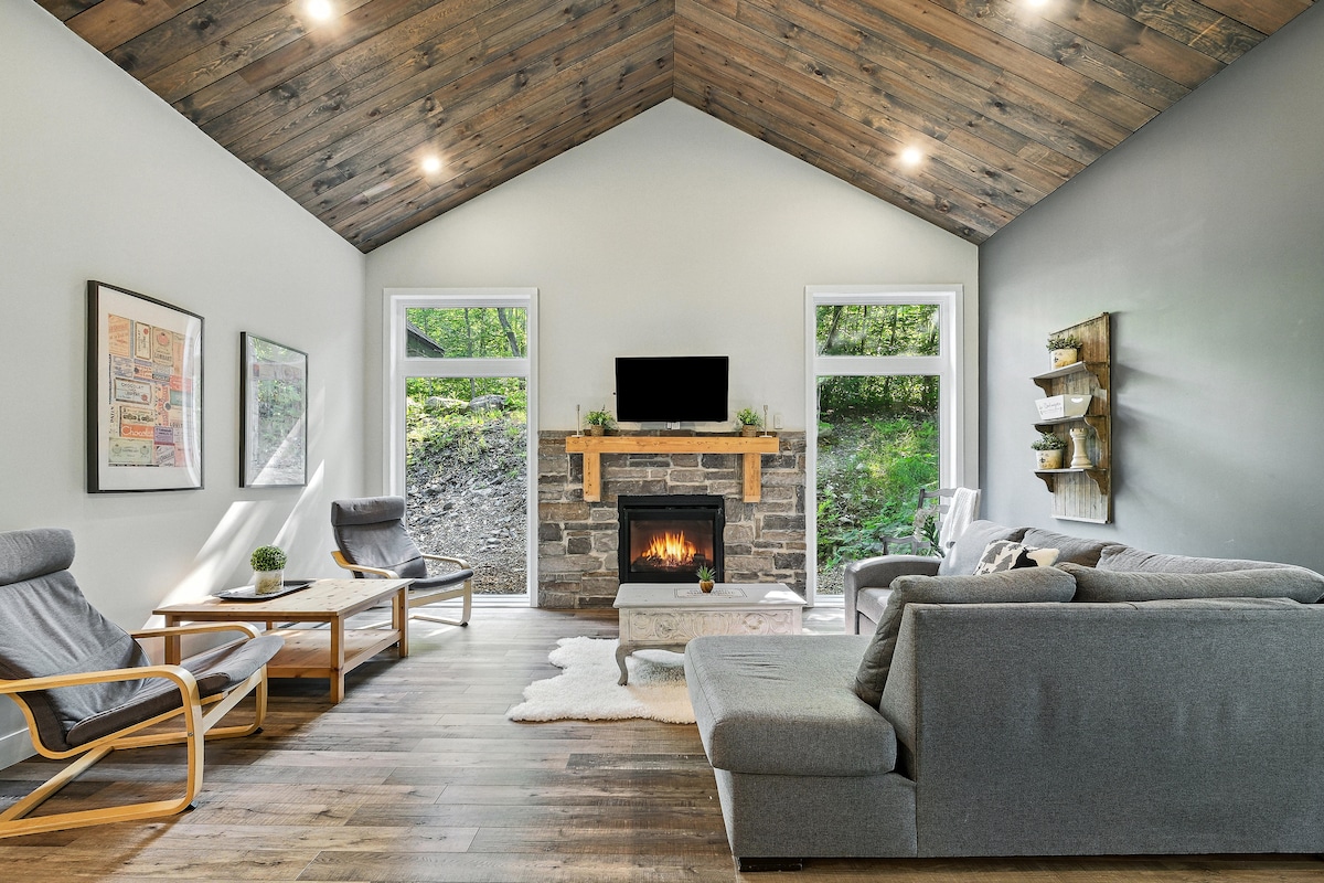 Un chalet lumineux au style scandinave moderne, parfait pour un séjour relaxant entre amis ou en famille. Profitez du spa privé, du sauna, du foyer intérieur et de la douche extérieure 4 saisons, entourée par la forêt. À environ 20 minutes d’Owl’s Head et de Jay Peak, c’est l’endroit idéal pour le ski, le plein air et la détente.
