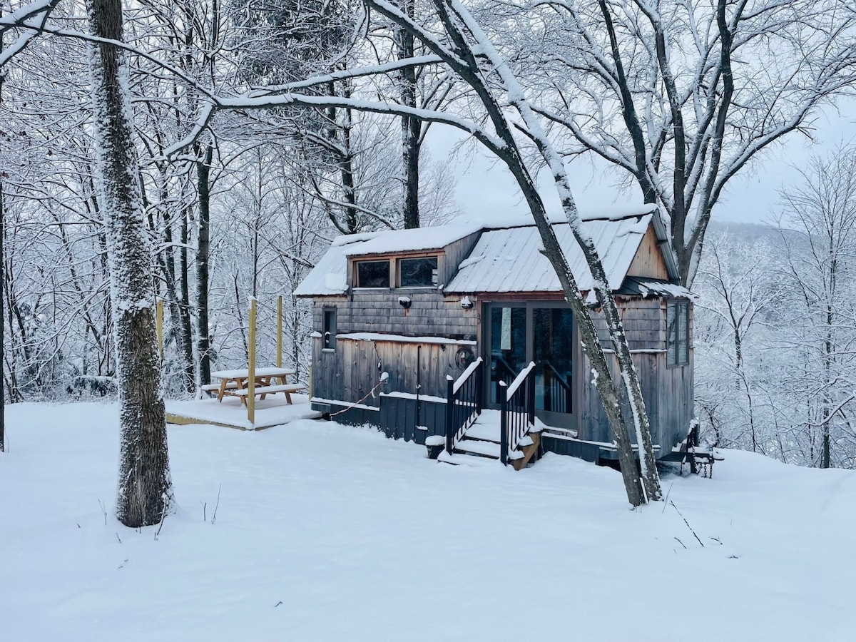 Welcome to Uncommon Accommodations, a collection of unique tiny homes and glamping stays on a 14-acre property along the Lamoille River. This cozy caboose-style tiny home includes access to a shared riverside spa experience with a year-round hot tub, brand-new treehouse sauna, and river access for cold plunges. Enjoy mountain views, swimming holes, and nearby Dog’s Head Falls—an ideal retreat near Stowe.