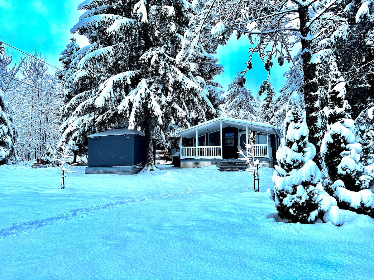 *$* WINTER PROMOTION *$* For a weekend reservation (Fri. & Sat.) the 3rd night on Sunday is $90.00!. Monumental open concept, in the heart of nature. Access to trails directly behind the house. Wood stove, large modern bathroom, one bedroom + sofa bed. Another sofa bed in the living room. Ideal chalet for a couple with children or two couples. Wild birds, turkey, and deer lovers welcome! Wifi and EV charger included. Dogs Welcome! CITQ : #308038