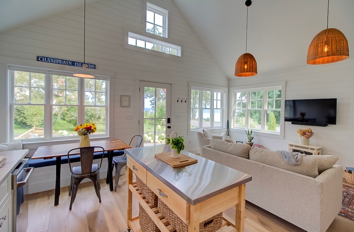 SunCroft is the perfect destination for a quiet getaway combined with outdoor activities. This country cottage has gorgeous views of a small lake nestled in mountains. Morning mists coming off the pond’s surface are particularly beautiful while relaxing with coffee and listening to loon calls. Within a few steps of the lake, you can enjoy swimming and kayaking or bring your own fishing poles. The surrounding area offers hiking, biking, and microbreweries. Driving distance to Burlington or Stowe.