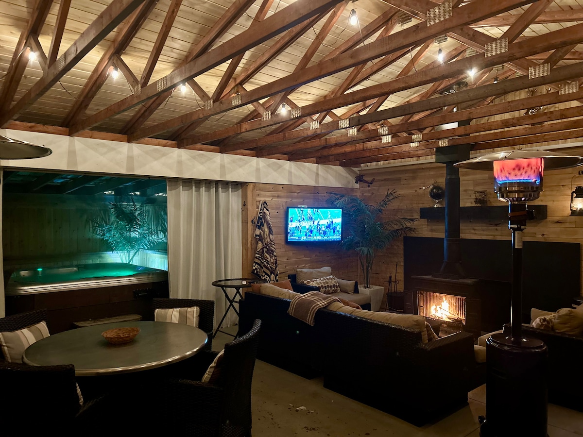 美丽的房源,配备水疗中心、泳池、篝火炉和游戏室