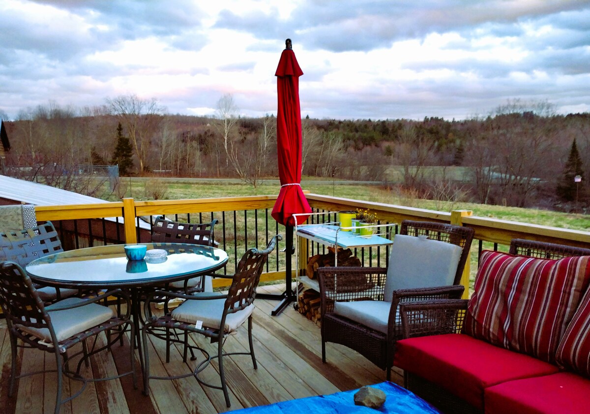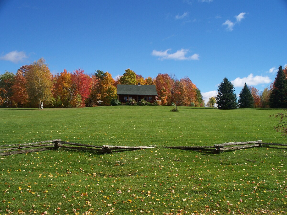 Come and embrace the majestic beauty of Vermont from Sugar Hill, a quaint log cabin nestled on 24 acres of beautiful countryside. Enjoy the views of the Canadian mountains from the front porch with a cup of coffee or a glass of wine; or wander around the pasture or woods behind the cabin. Close to both Jay Peak and downtown Newport, you can enjoy all those locations have to offer, or simply relax. Please note that the stairs to the 2nd floor are steeper than usual.