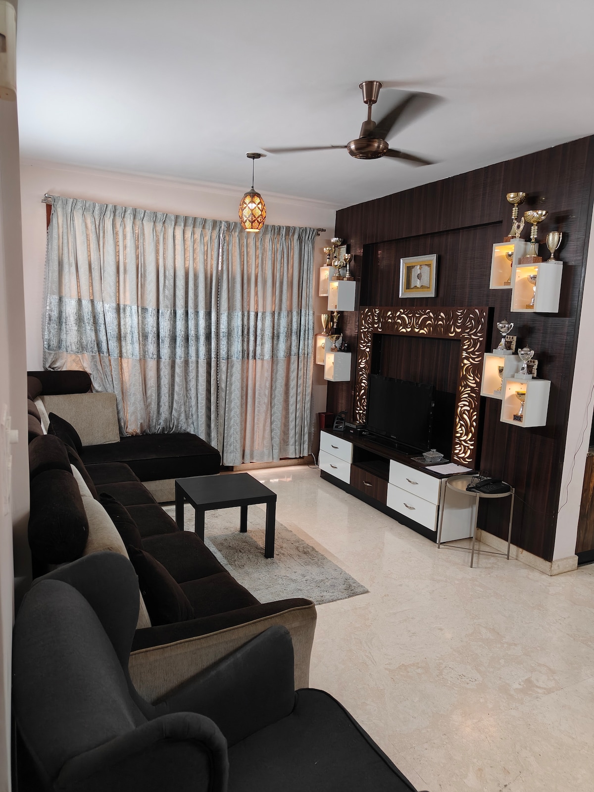 An elegant place, pastel and bright colors to sync in with your mood. The lighting that has been used would certainly make you feel at home. Indulge yourselves in this spacious apartment. The interior of the house reflects the simplicity that has been enhanced through few color combinations. The magnificent apartment bathed in sunshine is on the 3rd floor of the building. An elegant hall for you to unwind during the day and fully functional kitchenette to fulfill your needs.