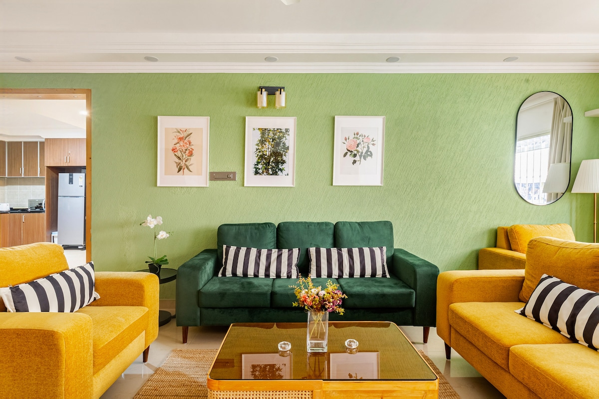 Welcome to our newly renovated, spacious 1-BHK flat, ideal for couples and families seeking comfort and convenience. The bedroom boasts a queen bed and soft orthopedic mattress for a restful night's sleep. Relax in the large living room with a 43-inch Smart TV, lightning-fast WiFi and dedicated workspace. Comes with a super clean bathroom stocked with essentials. The fully equipped kitchen includes basic ingredients, high-quality appliances, and crockery for your culinary adventures.