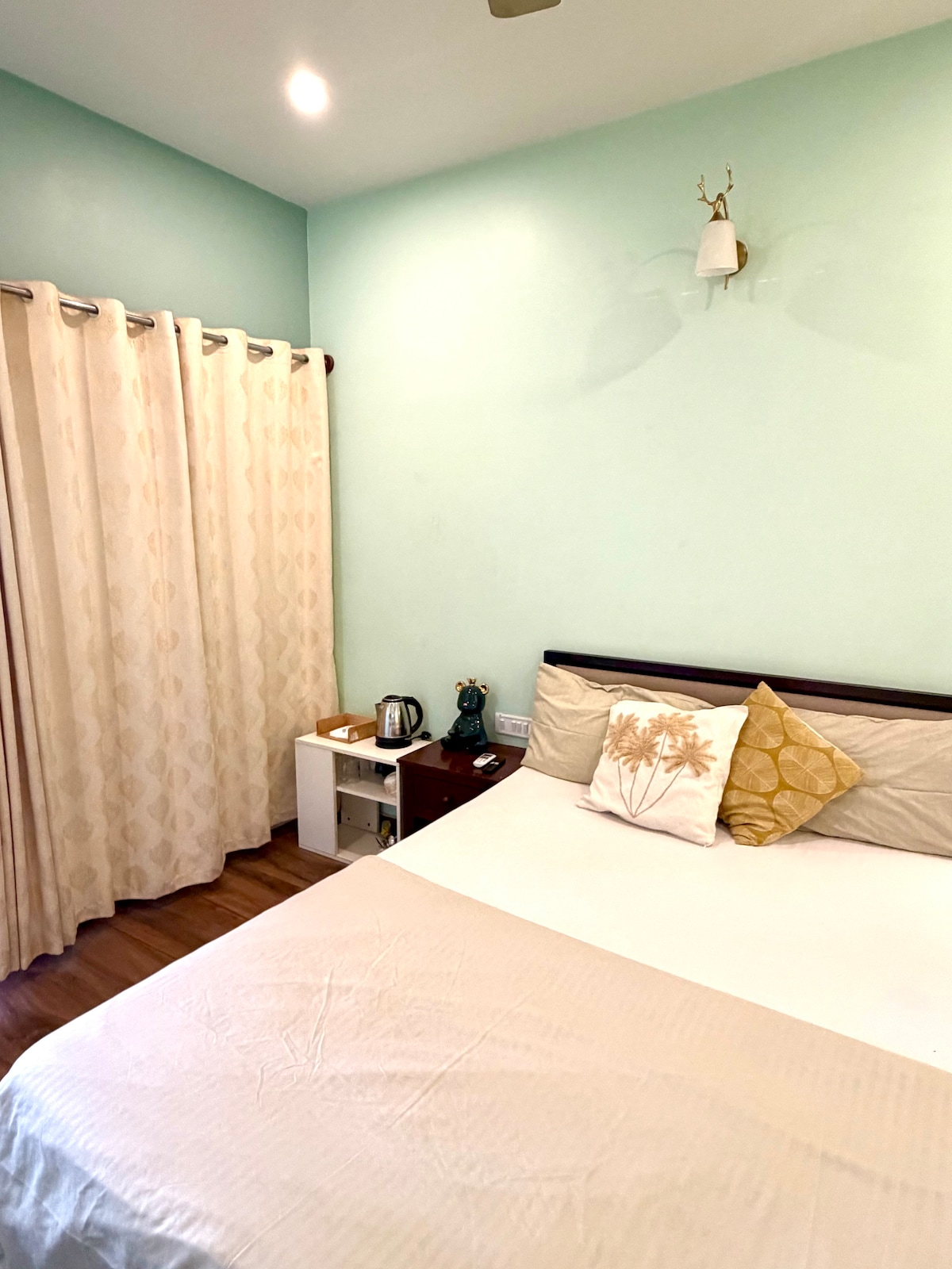 Parvati, a cozy one-bedroom home that offers a full-unit experience with all the amenities you need for a comfortable stay. Whether you’re visiting for work or leisure, it provides a peaceful escape in the heart of Bangalore, blending modern comfort with nature’s charm. Surrounded by a lush garden with a private portico, the home is designed with an antique theme, featuring a natural well, delightful poster bed and vintage decor that creates a warm, inviting atmosphere.