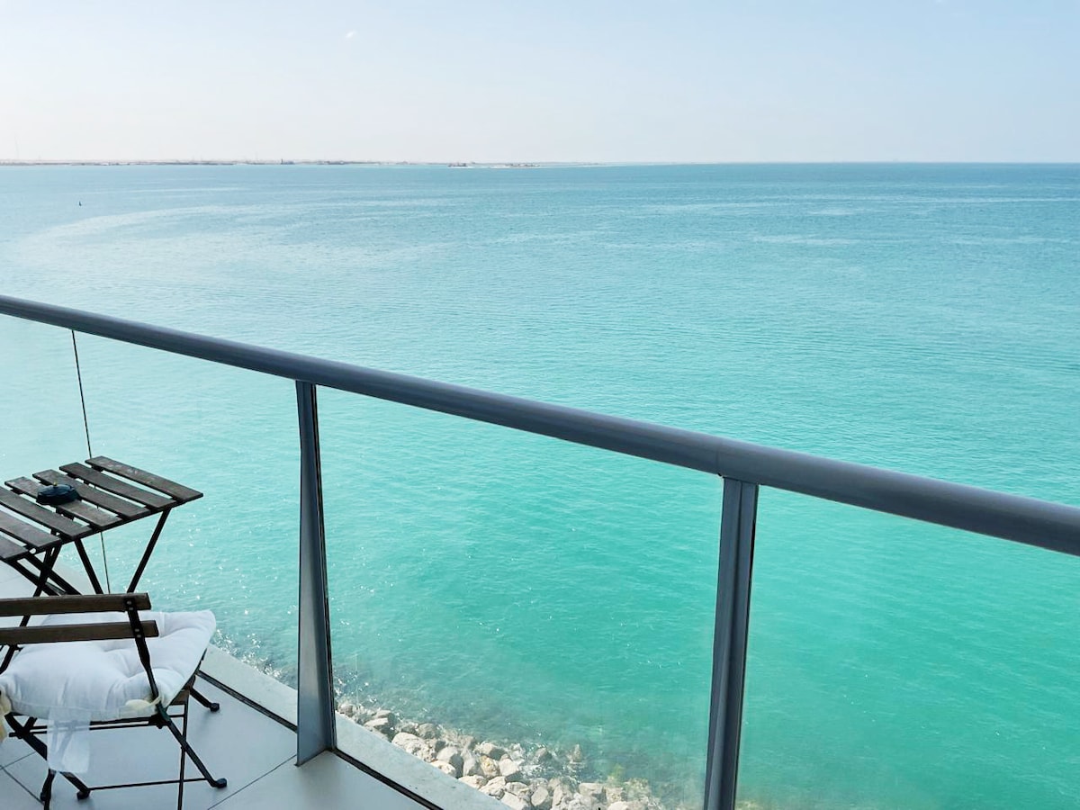 Take a break and unwind at this peaceful space while taking in the beautiful waters from the balcony. Studio close to free Beach, Golf course, Marina and luxury hotels: Ritz Carlton, Waldorf. 20min drive to the Hajar Mountains, 5min to Alhamra. Lockbox access. Parking, Pool, play area. Full sea view from balcony. Sleep: King size bed+Kitchen: cooker, w/machine, Fridge, Dolce Gusto, toaster. Other: Wifi, Smart TV, 24/7 market/cafe. Walking distance to restaurants, Sailing and Yacht Club.