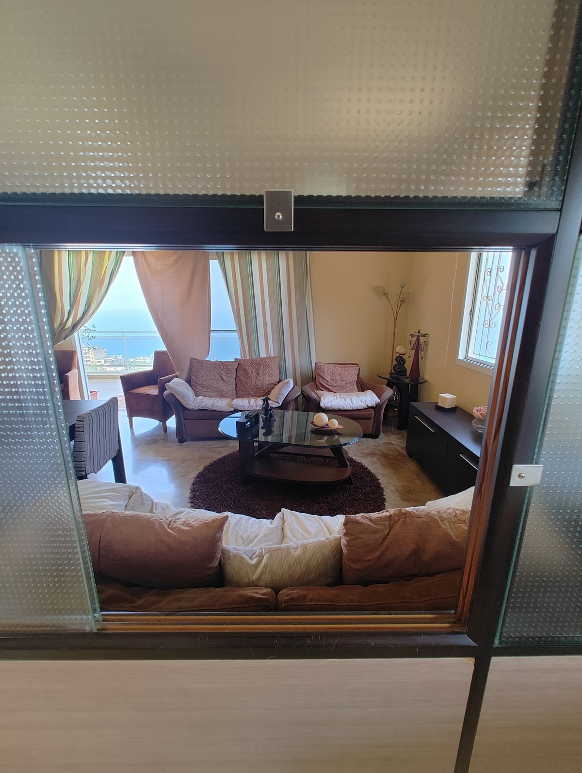 Discover our Amazing Sea View Apartment, centrally located for your convenience. Relax and admire stunning sunsets from your cozy bed. Equipped with modern amenities, including 24/7 electricity and WiFi. Just a 3-minute walk from the beach, surrounded by restaurants, markets, and public transportation. Additional perks include a laundry room, private parking, and entrance. Contact us for group reservations and enjoy the breathtaking sea view. Managed by Hosting Lebanon