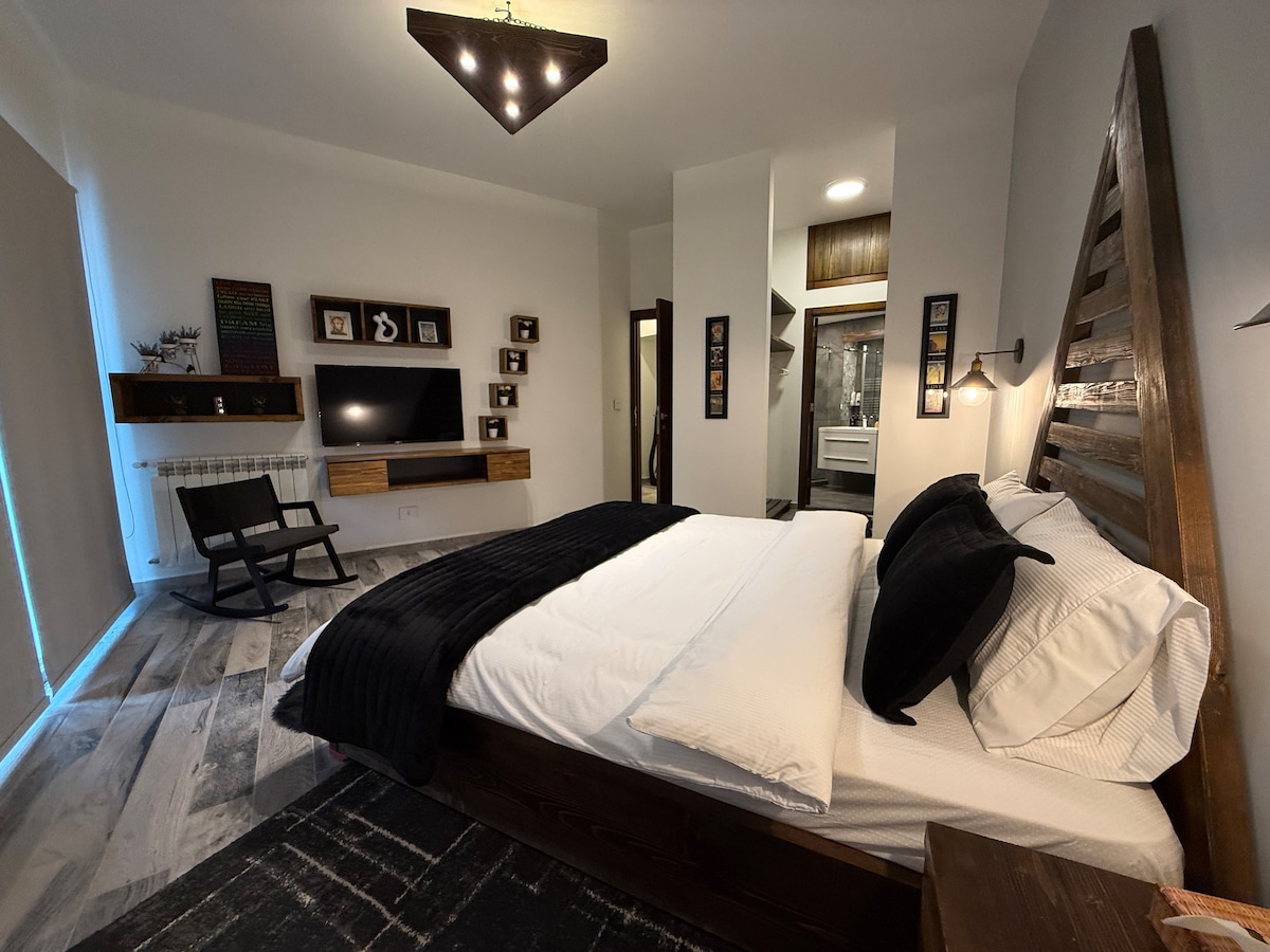 Escape to a modern mountain retreat in Tannourine El Fawqa. Enjoy a stylish room with a comfy bed, chic design, and private balcony with stunning mountain views. Take the elevator to the rooftop pool and relax under the sun. Breakfast available for an extra charge. Perfect for couples or solo travelers seeking peace, nature, and comfort near Tannourine’s cedar forests and local cafes.