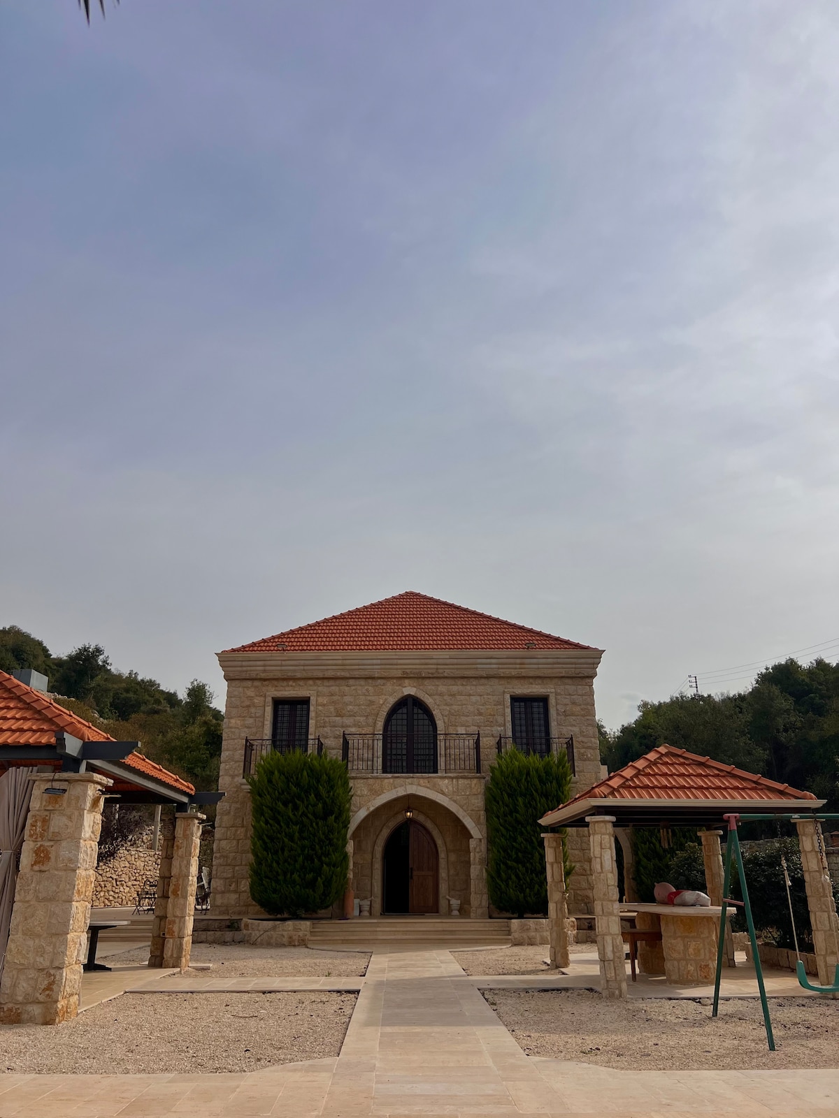 Our dream house in the Lebanese mountains is a haven of peace. Located in Kfour, Ghidras, this site offers complete immersion in nature. Designed by an architect, two guest houses of pine wood blend with the landscape and ancient pine trees, providing thermal comfort. Just a five-minute walk away, several beautiful hiking trails begin. Numerous activities include hiking trails, local festivals, walks, sunbathing, barbecues, a jacuzzi, and a pool (five minutes by car). Contact us for more info.