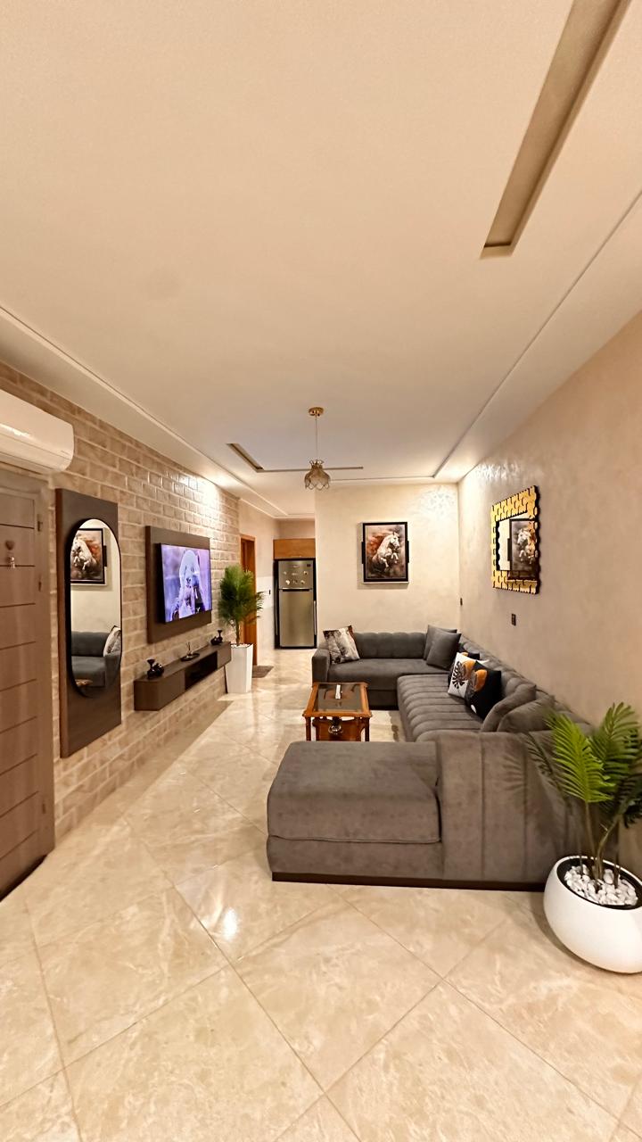Appartement Le Sultan tout neuf décorer design avec goût vous proposes 2 chambres spacieuses et modernes. Un grand salon ainsi qu’une salle à manger suivi d’une cuisine tout équipés Les voyageurs ont accès au parking gratuit. Pour la remise des clefs nous sommes sur places. Nous sommes à une minutes du centre ville À 15 minutes des plages de Saïdia Et à 40 minutes de l’aéroport d’OUJDA. Nous sommes à votre services pour toutes informations et demandes de votre part.