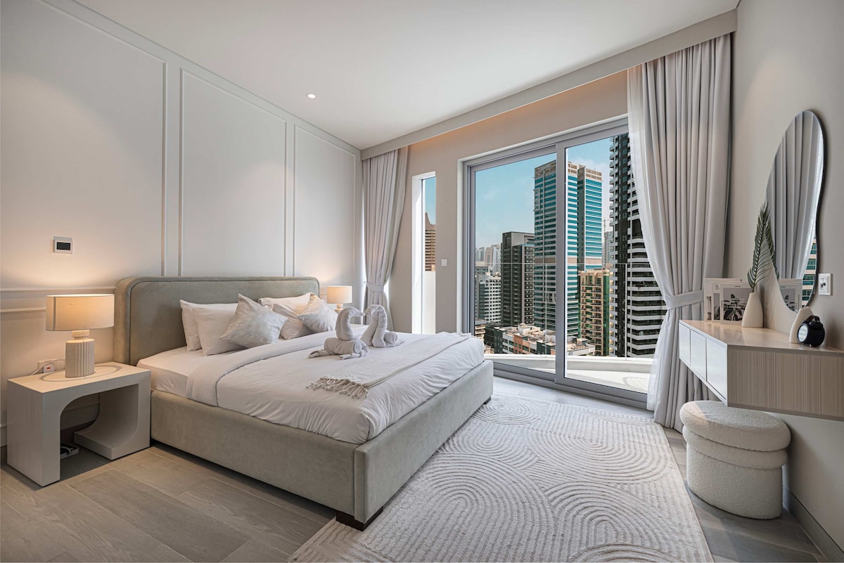 💫 Luxury renovated 1BR in JBR with Marina skyline views. 📍Prime Dubai Marina location: 1-min to JBR Beach, The Walk, The Beach, and moments from Marina Mall, Marina Walk, Pier 7, Metro & Tram. Easy access to Bluewaters Island, Ain Dubai, Palm Jumeirah & top Dubai attractions. Walking distance to Dubai’s iconic attractions. 🌲Perfect for holidays, beach trips & New Year fireworks stays. Fast Wi-Fi, full kitchen, pool & gym access. Book your spacious JBR beachfront escape today!
