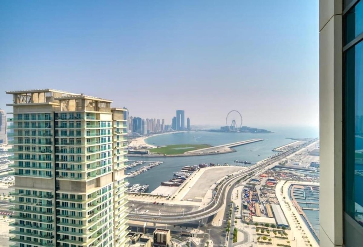 🌴 Steps from JBR Beach & 🚋 Tram Station, this stylish studio offers breathtaking 🌅 Ain Dubai views in front from your bed. Thoughtfully designed with modern furnishings, it blends luxury and comfort perfectly. 💤 Relax in peaceful surroundings, ☕ enjoy your morning coffee on the balcony, and explore Dubai’s vibrant attractions just minutes away. ✨ A cozy retreat where comfort meets elegance — your perfect Dubai escape awaits! 🌇