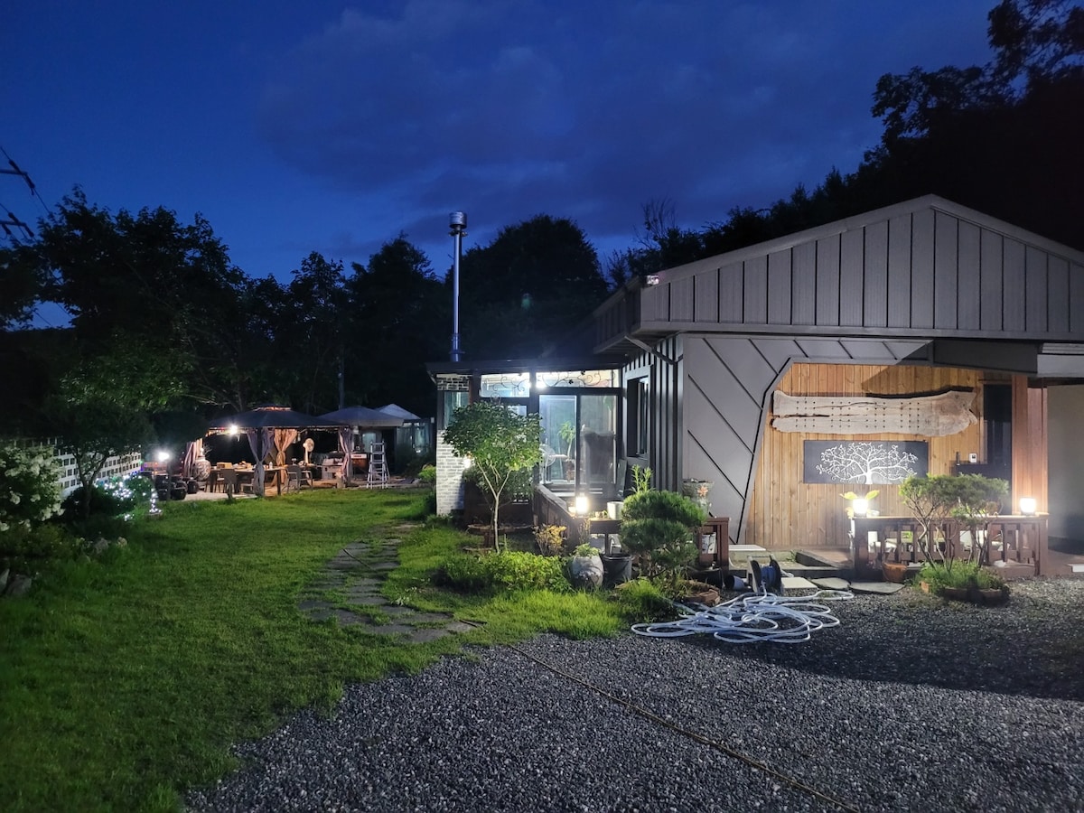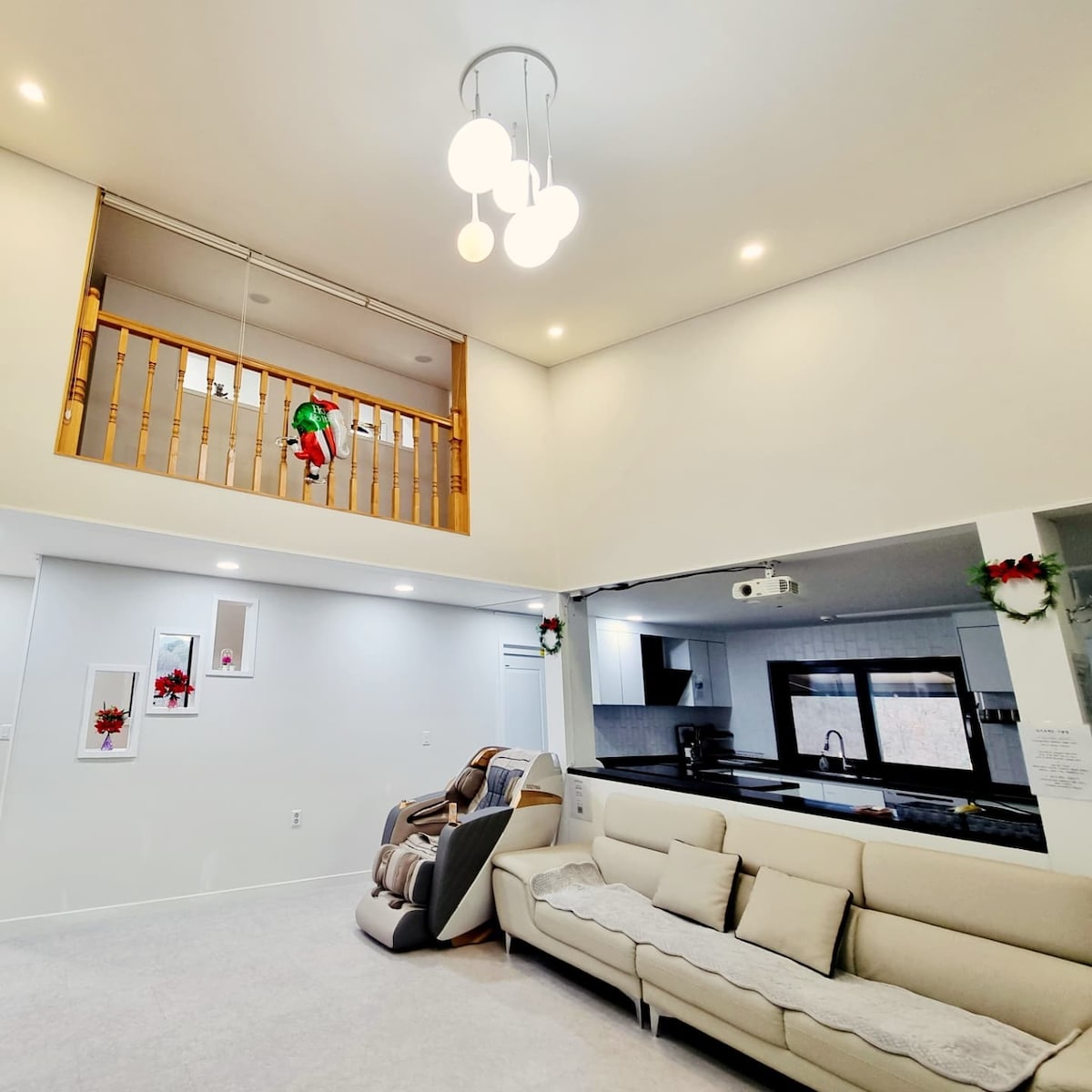 Spacious private retreat nestled in the serene nature of Gapyeong, offering the perfect setting for unforgettable moments. Youโll wake to warm sunlight and end your day beneath a sky overflowing with stars. With over 165 square meters of indoor space and over 1,300 square meters outdoors, is perfectly suited for family getaways, gatherings with friends, and workshops. Thoughtfully designed amenities and warm hospitality await, making your time with loved ones even more meaningful and enjoyable.