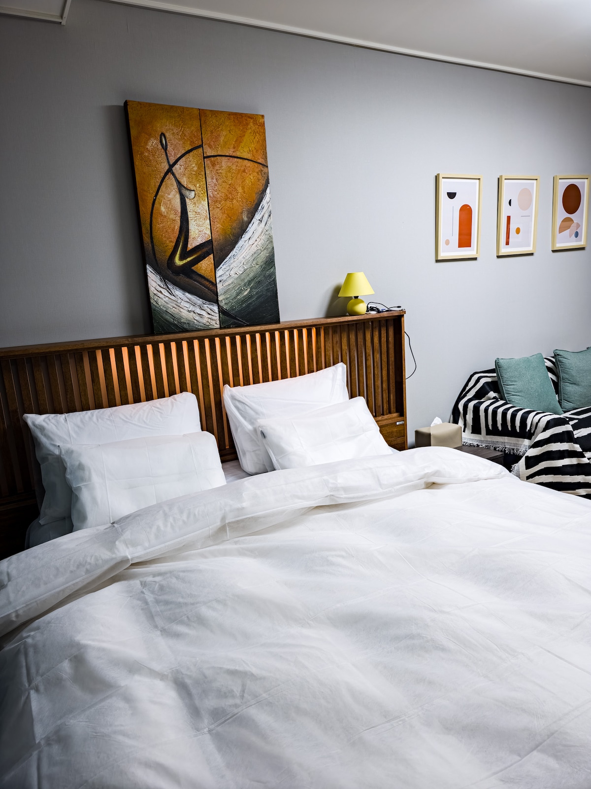 작은 동네 속 나만의 감성으로 가득한 작은 방♡゛ 바이오워싱 침구, 이솝 어메니티, 다이슨 슈퍼소닉 헤어드라이어, 스타일러, 섬세이 에어샤워, 프리미엄 조식으로 편안한 휴식을 선사합니다. 아삭아삭 달콤한 영주 사과, 영주의 농부가 재배한 유기농 보리로 끓여낸 고소한 보리차. 남선이 사랑하는 영주를 가득 담아두었습니다. 남선 프리미엄 스테이에서 영주를 즐겨보세요:) ☘︎