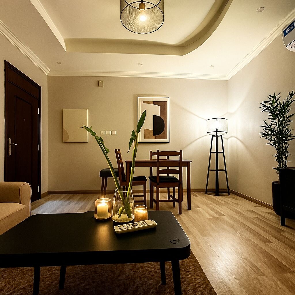 You will Enjoy a stylish experience at this centrally-located place. A modest condo downtown can be “a perfect base for exploring the city specially designed for who likes warm modern styles; By car : The airport is 15 minutes Corniche 16 minutes Formula track 15 minutes Red sea mall 16 minutes Mall of Arabia 8 minutes. By walking : Laundries 5 minutes Supermarket 5 minutes
