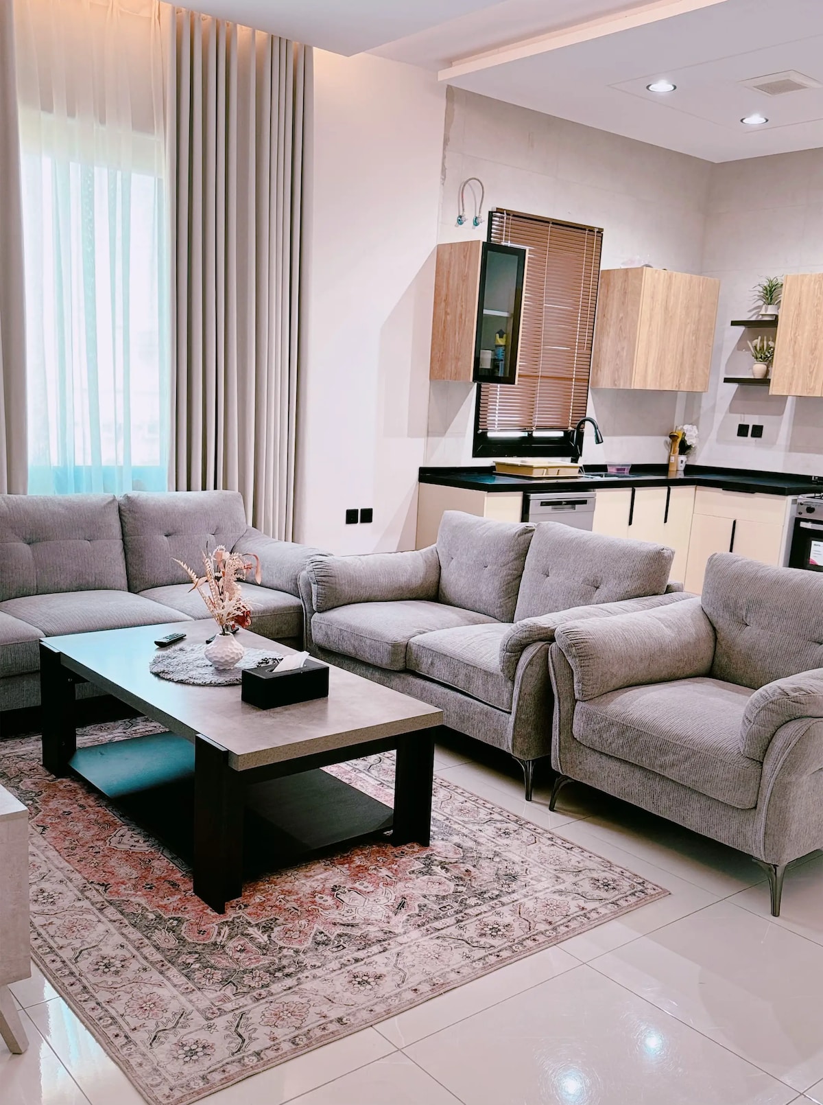 استمتع بإقامة فاخرة في هذه الشقة العصرية المكونة من غرفة نوم وصالة مريحة. الشقة مجهزة بكل وسائل الراحة التي تحتاجها، بما في ذلك مطبخ كامل لطهي وجباتك الخاصة، وحمامين أنيقة وحديثة .تقع الشقة في موقع هادئ وقريب من المعالم السياحية والمحلات التجارية والمطاعم مثالية للأزواج أو المسافرين المنفردين الباحثين عن إقامة مريحة وهادئة