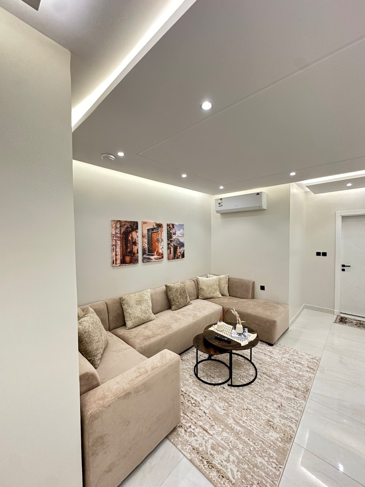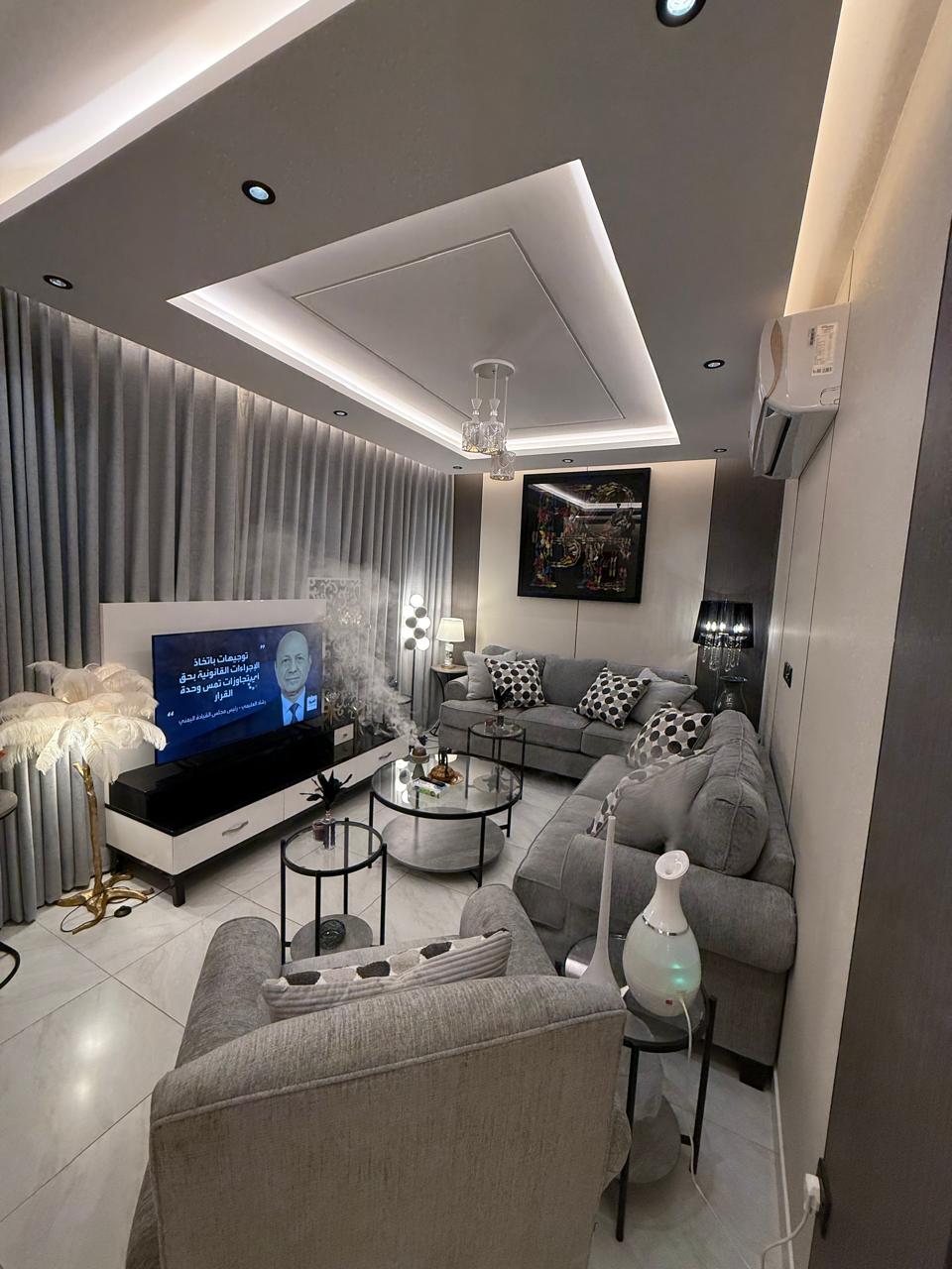 غرفتين نوم وصالة حديثة شاشة 75بوصة