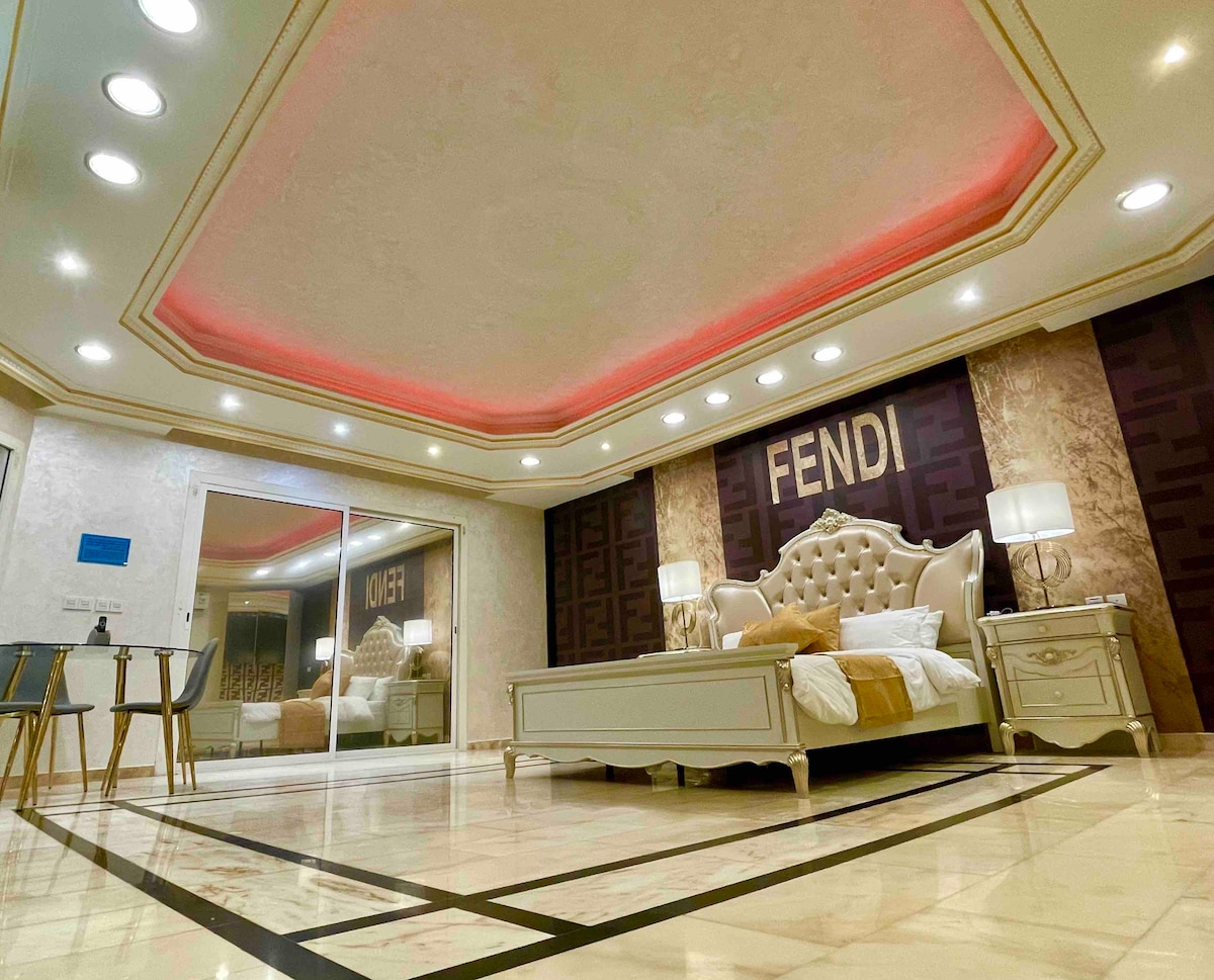 Hermès is a luxurious suite with hotel specifications designed to be one of the best suites in the city of Jeddah. The suite not only aims to provide a comfortable experience, but also aims to provide an exceptional experience by all standards. The suite was designed to suit the newlyweds and small families who looking for exceptional accommodation due to the perfect location and luxurious services provided by the suite such as TV cinema, jacuzzi, public swimming pool, sauna, and game room.
