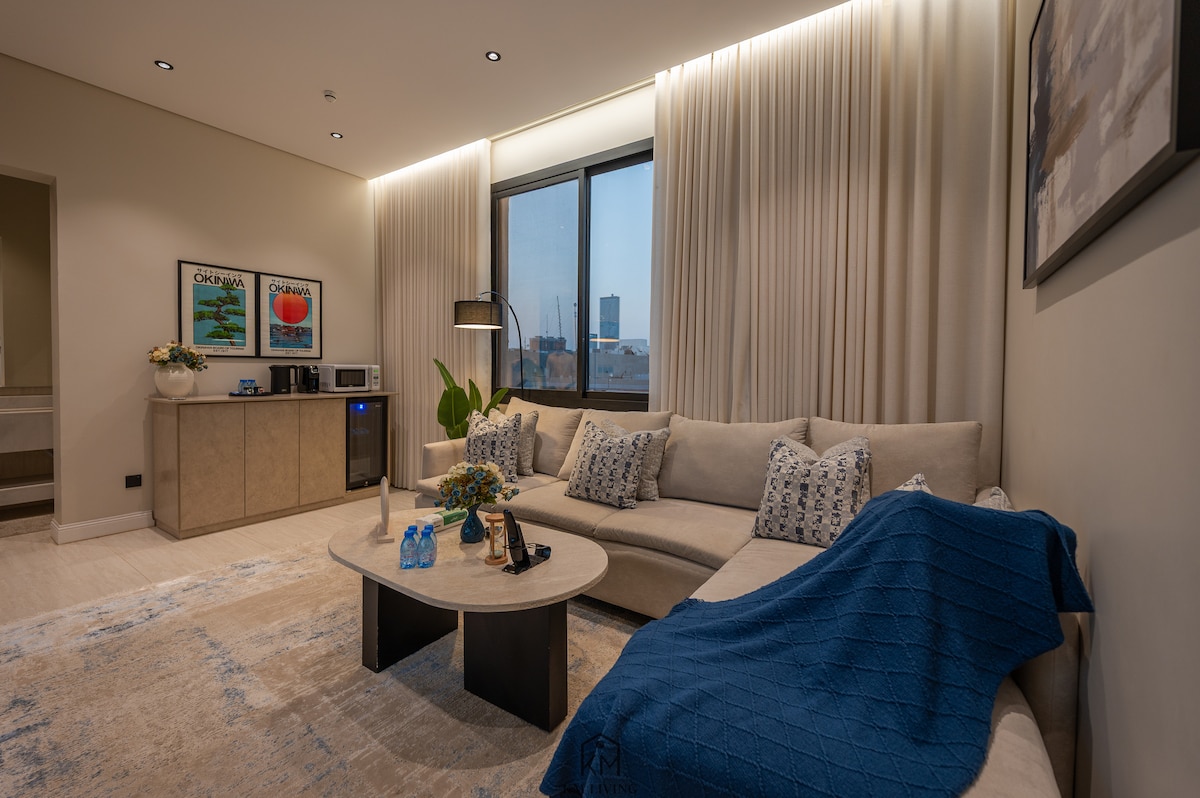 Enjoy a refined stay in a stylish one-bedroom residence with a modern design and a calm, comfortable atmosphere. Perfect for relaxation and privacy. Ideally located near the Waterfront and Red Sea Mall, with easy access to the airport, restaurants, cafés, and shopping areas. An excellent choice for couples, small families, and business travelers seeking comfort in a prime location.