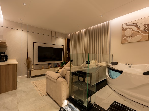 Versace is a luxurious suite with hotel specifications designed to be one of the best suites in the city of Jeddah. The suite not only aims to provide a comfortable experience, but also aims to provide an exceptional experience by all standards. The suite was designed to suit the newlyweds and small families who looking for exceptional accommodation due to the perfect location and luxurious services provided by the suite such as TV cinema, jacuzzi, public swimming pool, sauna, and game room.