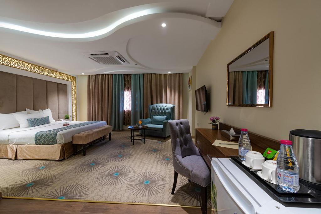 Discover a blend of comfort and sophistication at Regal King Stay | Palette Luxury Mirage in Jeddah. Thoughtfully designed for a relaxing and stress-free stay, this modern suite offers premium amenities, including a TV, air conditioning, a cozy seating area, and daily housekeeping. For your safety and peace of mind, the property features non-smoking rooms, CCTV surveillance in public areas, and fire extinguishers. Experience a tranquil and worry-free retreat in a welcoming atmosphere!