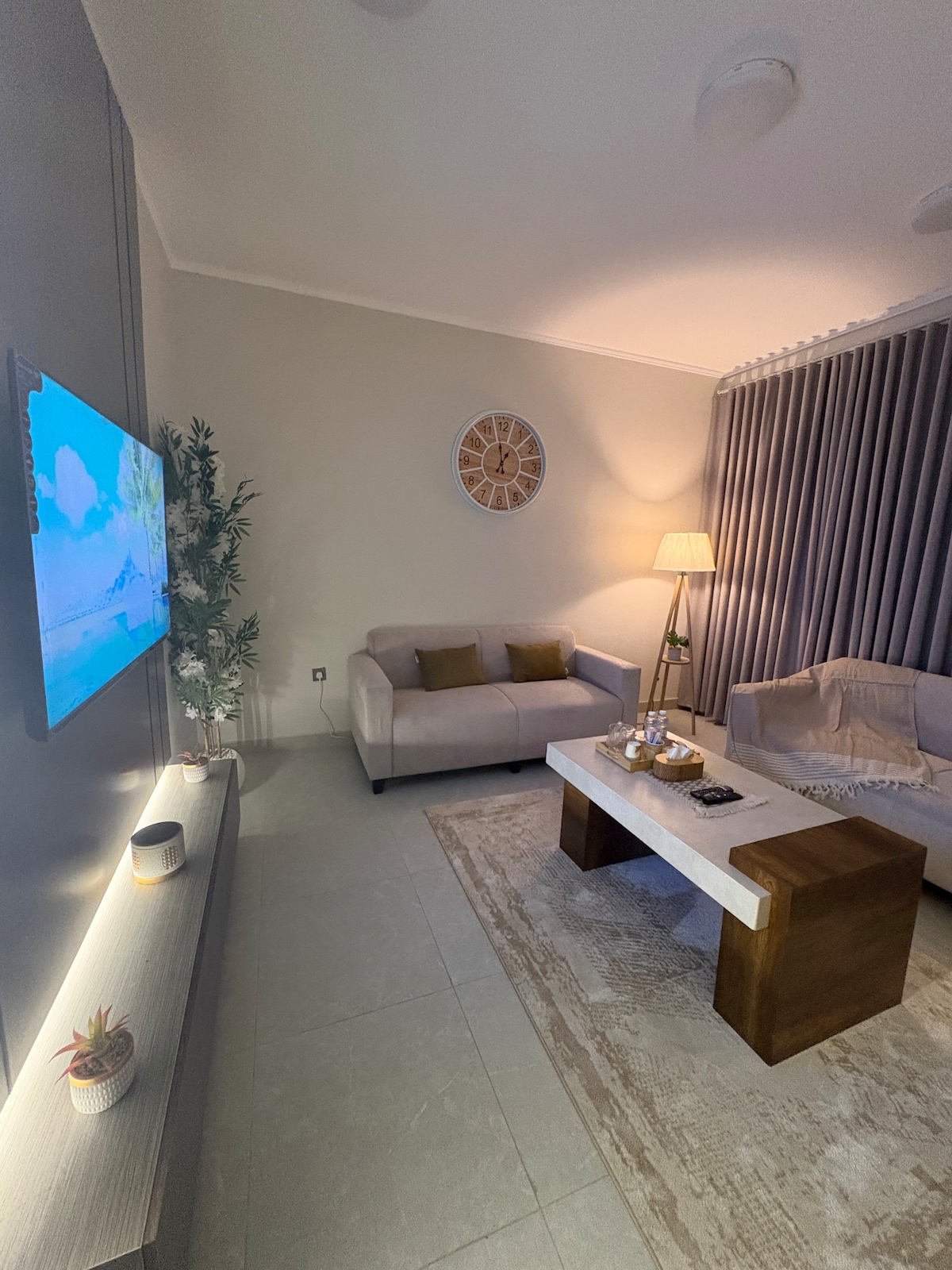 استمتع بإقامة فاخرة في هذه الشقة العصرية المكونة من غرفة نوم وصالة مريحة. الشقة مجهزة بكل وسائل الراحة التي تحتاجها، بما في ذلك مطبخ كامل لطهي وجباتك الخاصة، وحمامين أنيقة وحديثة .تقع الشقة في موقع هادئ وقريب من المعالم السياحية والمحلات التجارية والمطاعم مثالية للأزواج أو المسافرين المنفردين الباحثين عن إقامة مريحة وهادئة