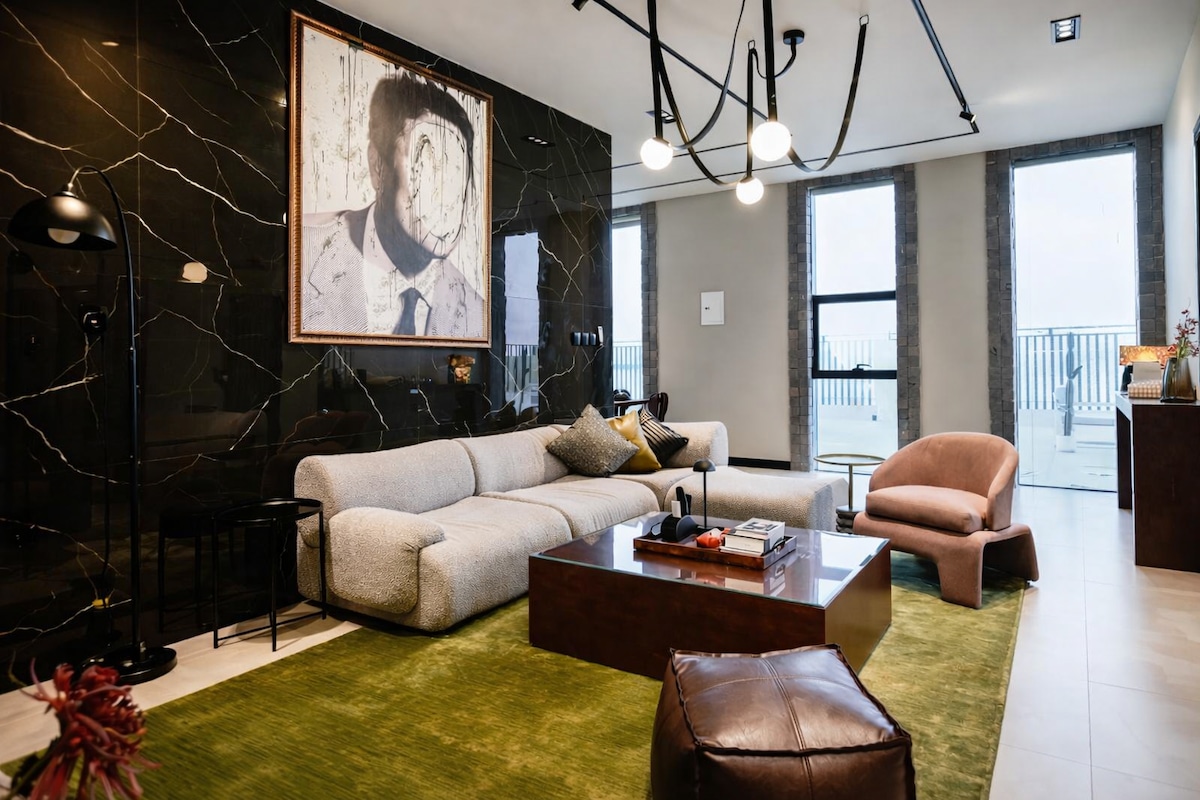 Welcome to your dream getaway, hosted by JIF HOMES! The Space: Beautifully designed living area with contemporary decor and large windows providing city views Bedroom with king-sized bed with premium linens Fully Equipped Kitchen Distance by Car: - 3 min to Red Sea Mall, Yacht Club, Jeddah Promenade, City Walk - 5 min to Roshn Waterfront - 8 min to Benchmark theater - 18 min to Jeddah Airport and Al-Jawharah Stadium JIF HOMES is dedicated to providing an exceptional stay. Yalla Jeddah!