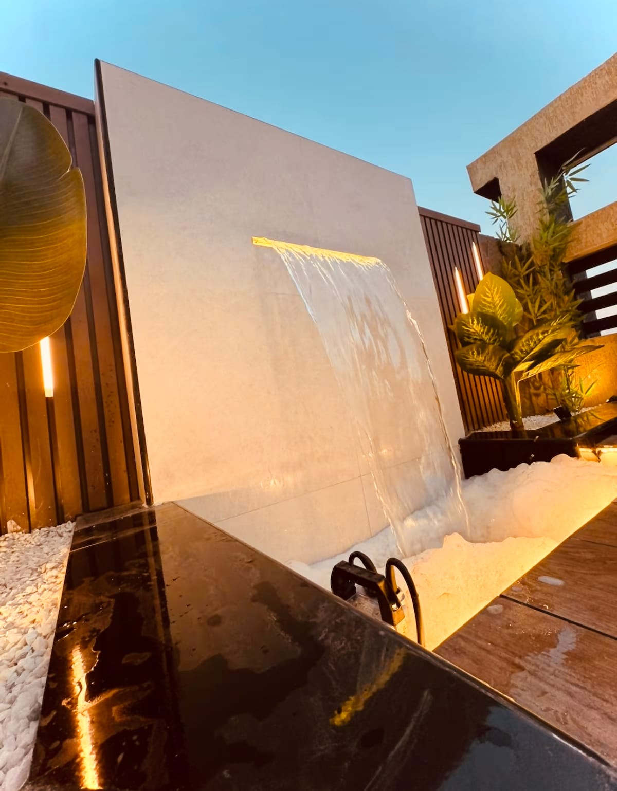 "استمتع بإقامة فاخرة ومريحة بهذا المسكن العصري الأنيق. يتميز بتصميم داخلي راقٍ وأثاث مريح. يضم غرفة نوم رئيسية بسرير فخم، ولحاف فاخر 5 نجوم ومنطقة معيشة فسيحة بتلفزيون ذكي شاشه (75) بوصه وكنب يتحول لسرير يتسع لشخصين. يتوفر ركن قهوة مجهز. وللرفاهية، يوجد تراس خارجي خاص وواسع بإضاءة خلابة وشلال مياه هادئ، مثالي للاسترخاء. المسكن مجهز بتكييف هواء وكافة وسائل الراحة الحديثة لضمان إقامة لا تُنسى."