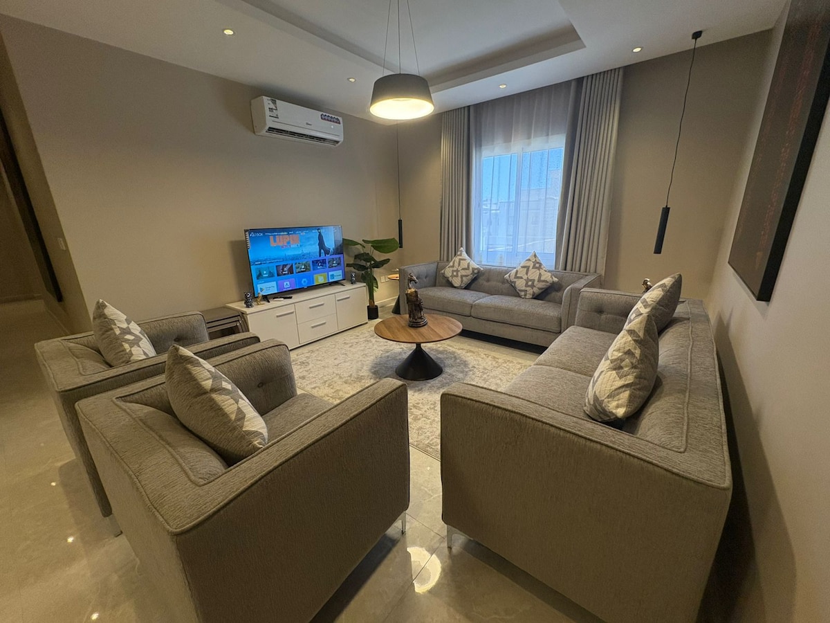 🌟 Welcome to Our Luxury Apartment in Jeddah 🌟 Enjoy a stay that combines luxury, comfort, and privacy in a premium building with an elevator and easy access. 🧹 Daily cleaning by fees & order delivery 📶 High-speed Wi-Fi 📺 70” Smart TV with Netflix & Shahid TV 🚗 Two private parking spaces 📍 Prime Location: 🌊 7 min from Obhur Beach ✈️ 5 min from Jeddah Airport 🏟️ 4 min from Al Jawhara Stadium 🎉 6 min from Jeddah Super Dome 📞 Available 24/7 — We’re happy to serve you anytime!