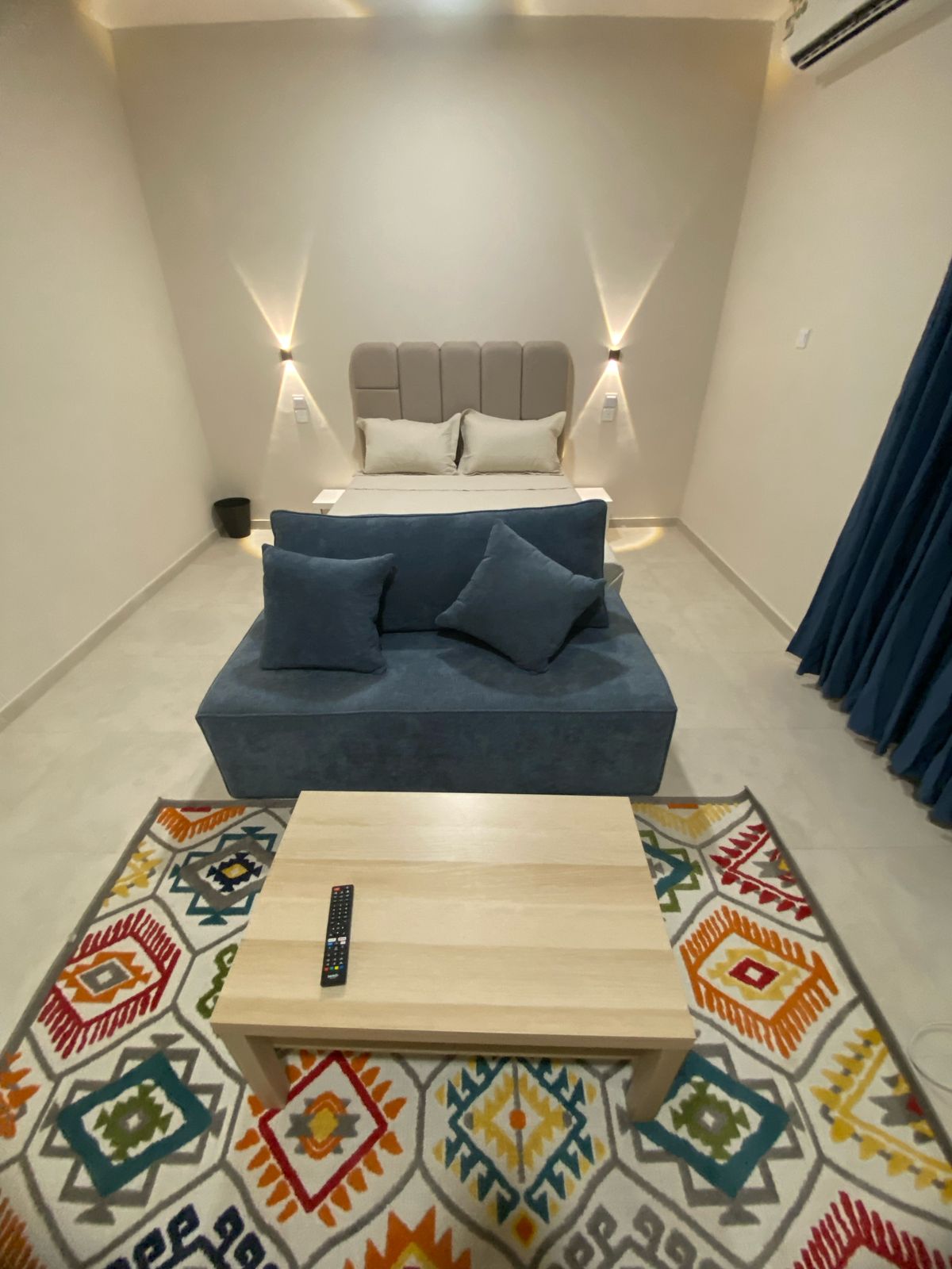 غرفة نوم وصالة بتصميم بوهيمي مدمج بالمودرن تجمع بين الراحة والأناقة موقف خاص سرير نفرين بمرتبة مريحة لباد فندقي وحدات تخزين بجانب السرير خزانة ملابس زجاجية أنيقة تسريحة أنيقة تتميز بتصميم عصري شاشة 65 بوصة 4k ركن مخصص لتحضير القهوة بكامل الملحقات ثلاجة توفر مساحه كافيه لحفظ المشروبات دورة المياه مجهزة بعناية تحتوي على مستلزمات الاستحمام للاستخدام لمرة واحدة غرفة معيشة بتصميم هادئ وأنيق يتميز بموقع مميز حيث يبعد من المطار10د الواجهة البحرية 14د ملعب الجوهرة 18د بجوار جميع الخدمات