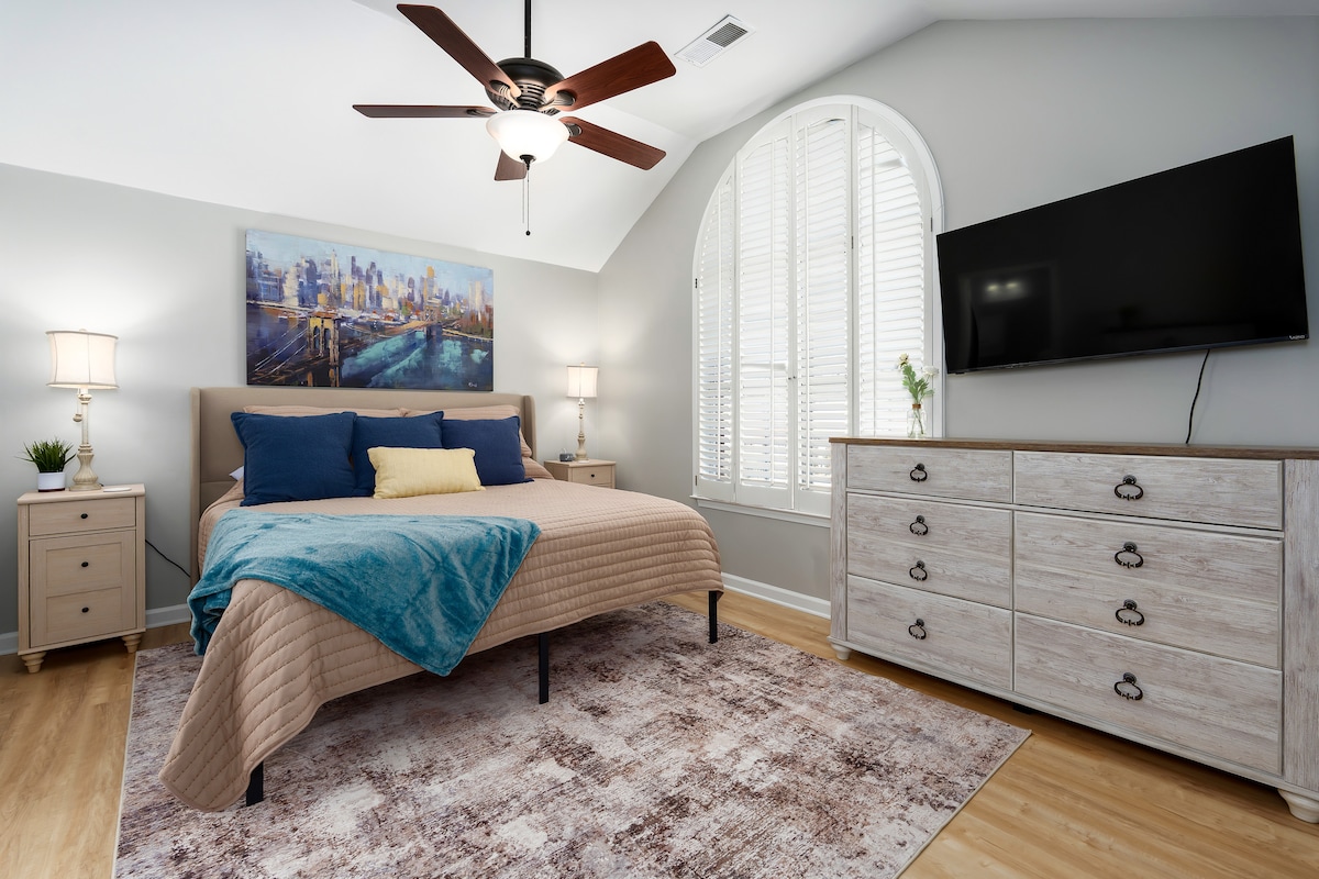 Immerse yourself in the best of downtown Birmingham! Walk to iconic eats, live music, and landmarks. After exploring, relax beneath your own pear tree, grill on the patio, or stream your favorites on 3 smart TVs with lightning-fast Wi-Fi. Inside, enjoy blackout curtains, a luxe rainfall shower, stocked kitchen, and dedicated workspace. Bedrooms are located upstairs for maximum privacy. Pet-friendly and perfectly located—your vibrant escape awaits!