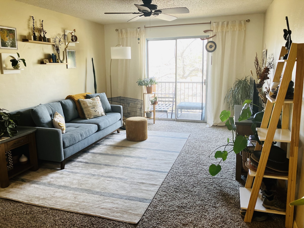 Welcome to our cozy, spacious condo centrally located in Golden that combines modern living with amazing outdoor opportunities! No car, no problem! From the condo you can walk to DT Golden to enjoy amazing restaurants, breweries and shopping or tour the famous Coors Brewery which is only a 5 min walk away! For outdoor enthusiasts, incredible trailheads and tubing down Clear Creek is very close. It is also centrally located for the School of Mines and a 10 minute drive to the iconic Red Rocks!