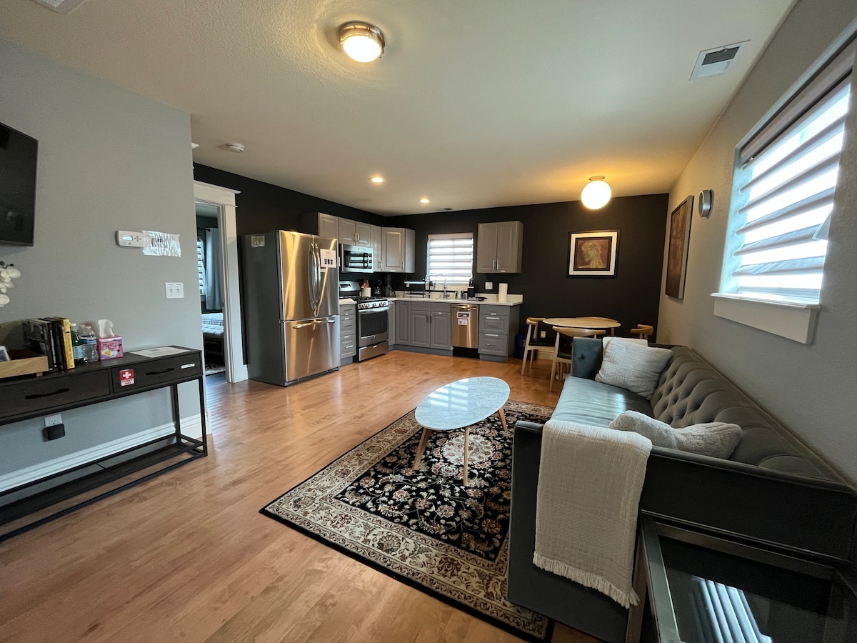 Completely private one-bedroom stand-alone guesthouse with fully equipped kitchen, full bathroom with shower & tub, laundry with full-size washer and dryer. The guesthouse is furnished with a king size sleep number bed, high-end furniture and lighting. Located in Tennyson, one of Denver’s most unique neighborhoods. Free Street parking. PLEASE NOTE: maximum occupancy of 2 adults and 2 kids under 12 only, only foldable mattresses available for kids upon request. 2021-BFN-0000786