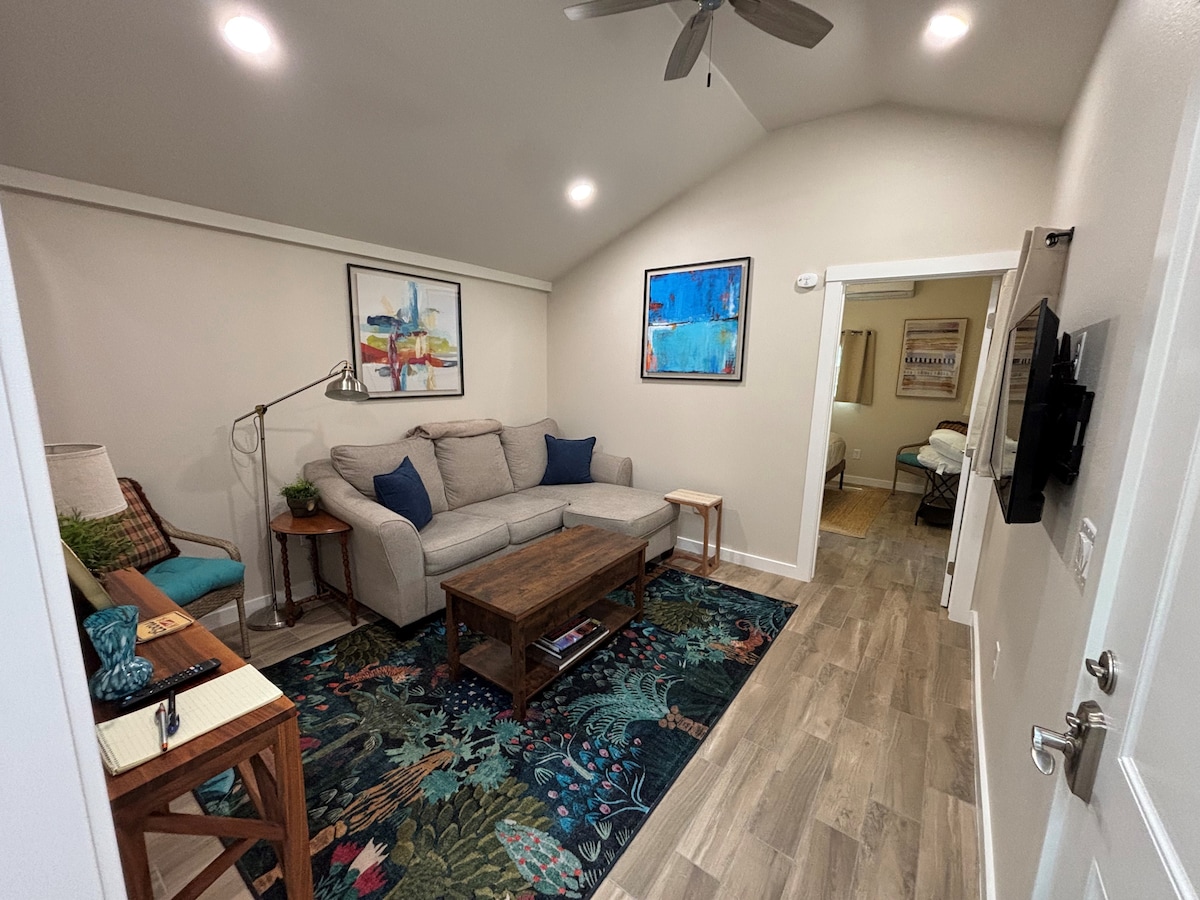 After an exclusive restoration project, this brand new, very clean, private guest suite with a private bathroom, kitchenette, workspace, and self-check-in is ready for you to enjoy. This space is renovated with a new kitchen, a new bathroom, high-end finishes, and a washer/dryer in the unit. We are thrilled to present this Mid-Mod Charmer that we hope will fill all your needs. Opting for clean and uncluttered energy, you'll find this property equipped for the most discerning guests.
