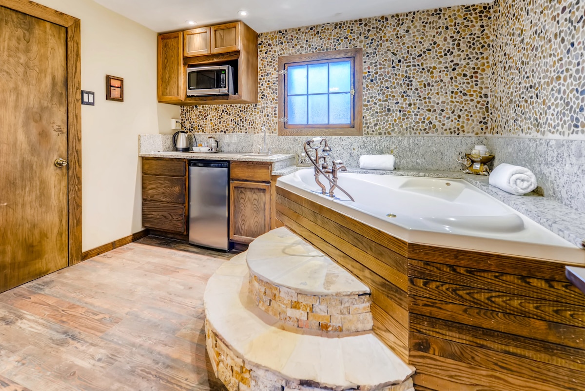 The newly remodeled cottage features a king size bed, an extra large jacuzzi tub, large walk in shower, and a gas stove fireplace. Decorated with relaxation in mind, the Earth tones and meditation green color will calm your soul and allow you to unwind in peace. Mere seconds from Red Rocks Amphitheater, our location is in the heart of Colorado. We are within walking distance of many of the best attractions and restaurants Morrison has to offer, as well as driving distance to nearby ski areas.